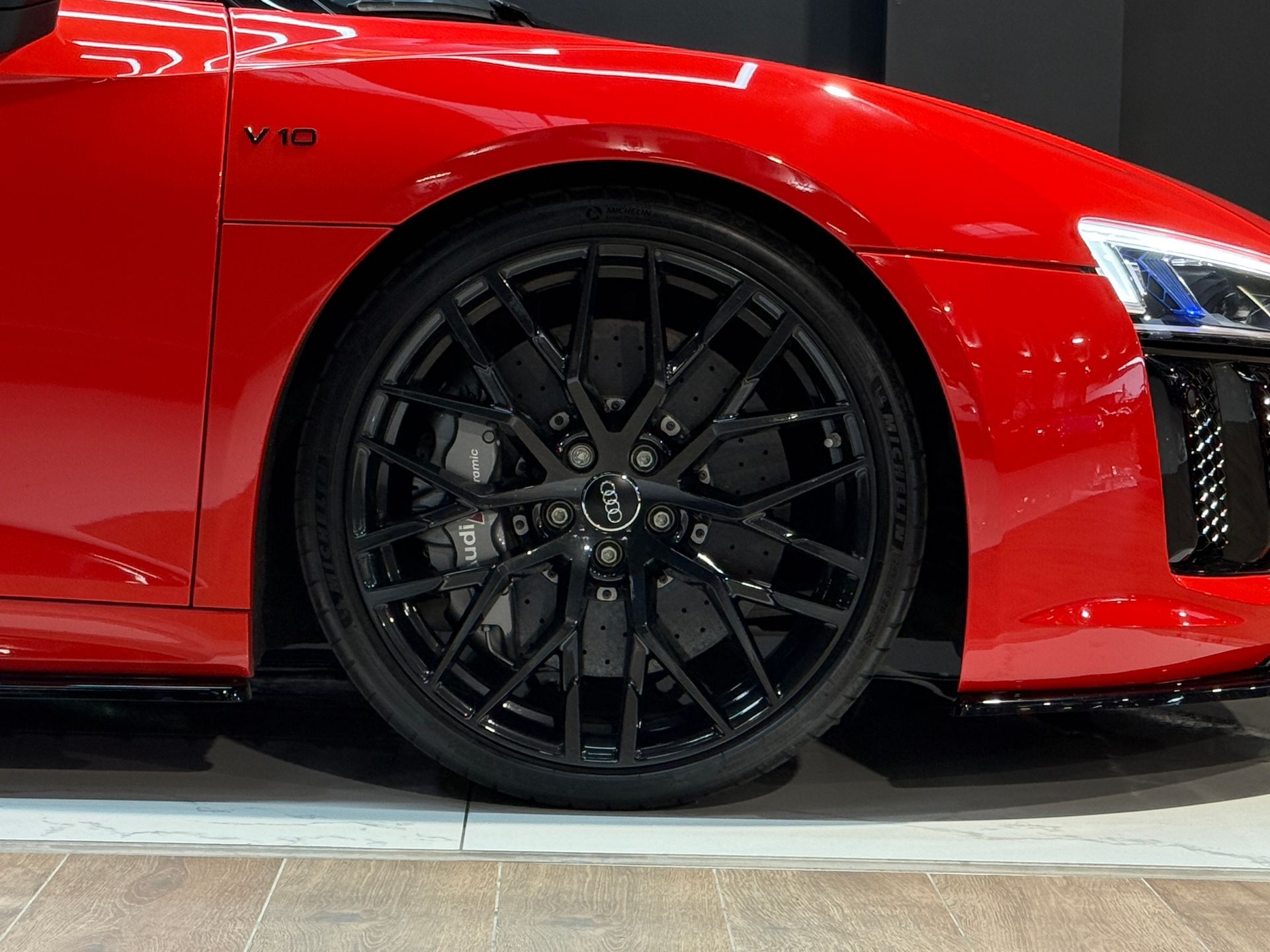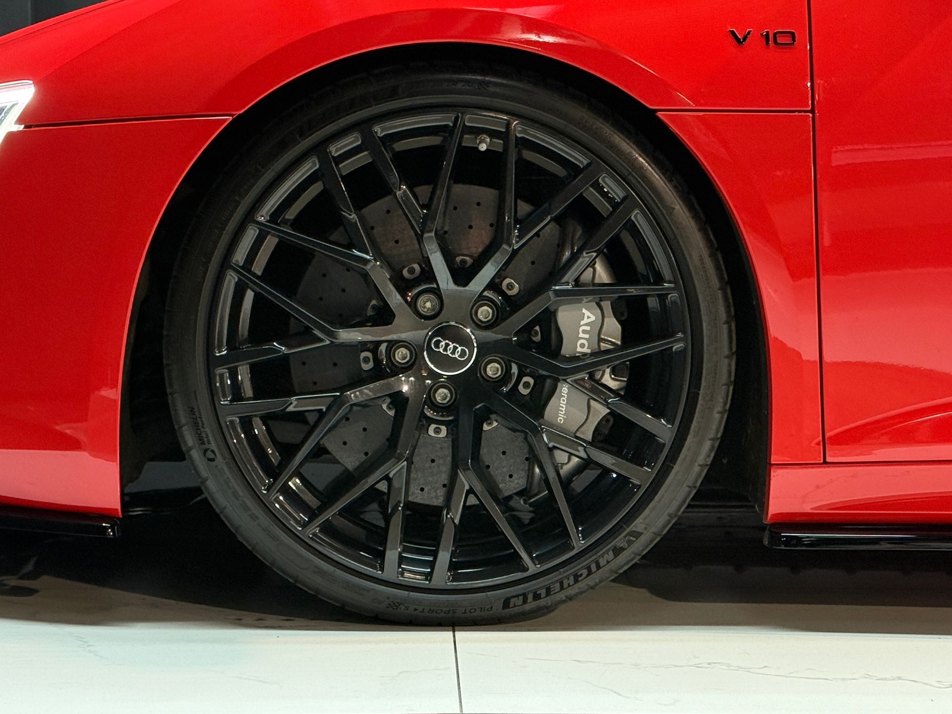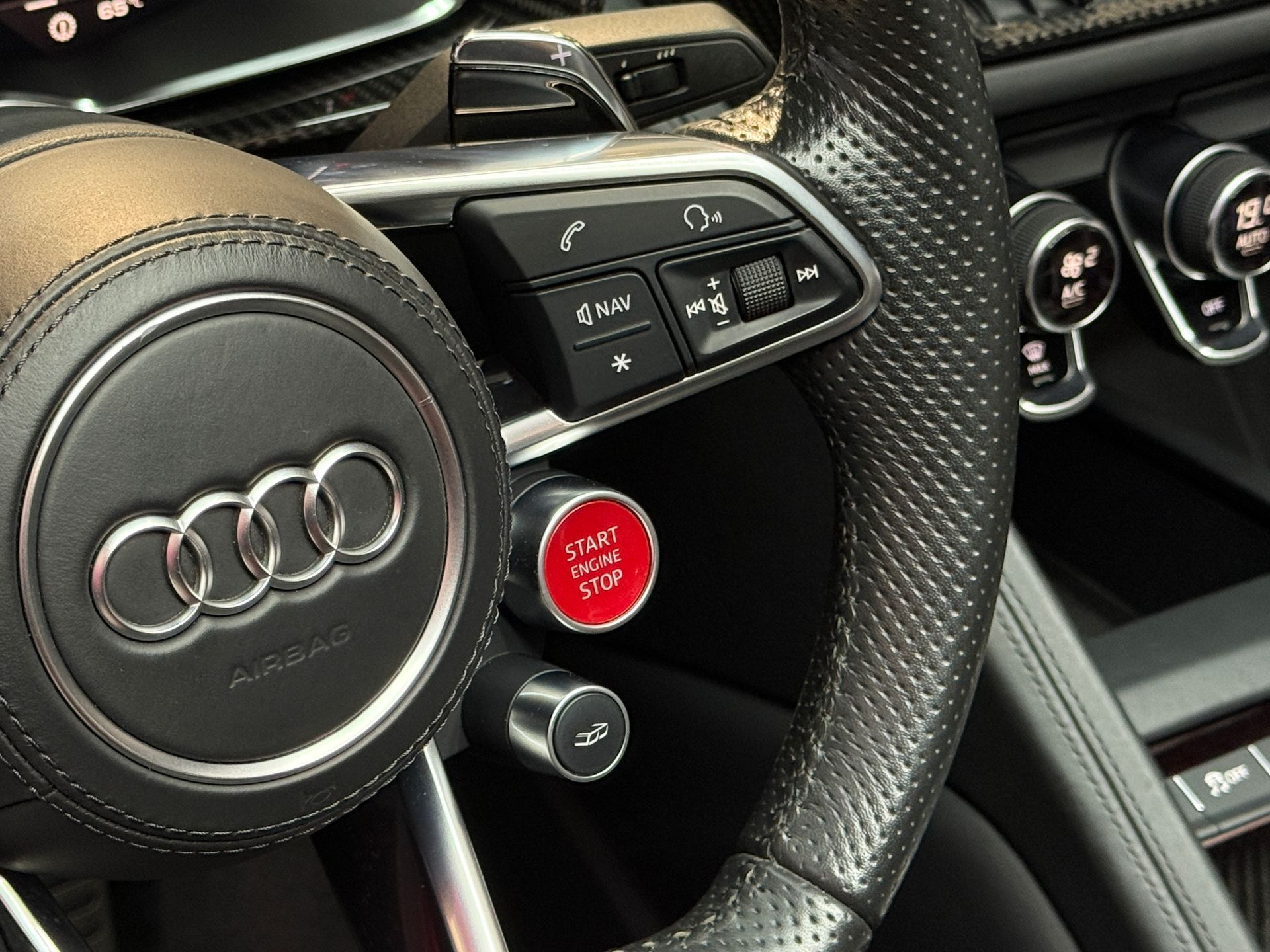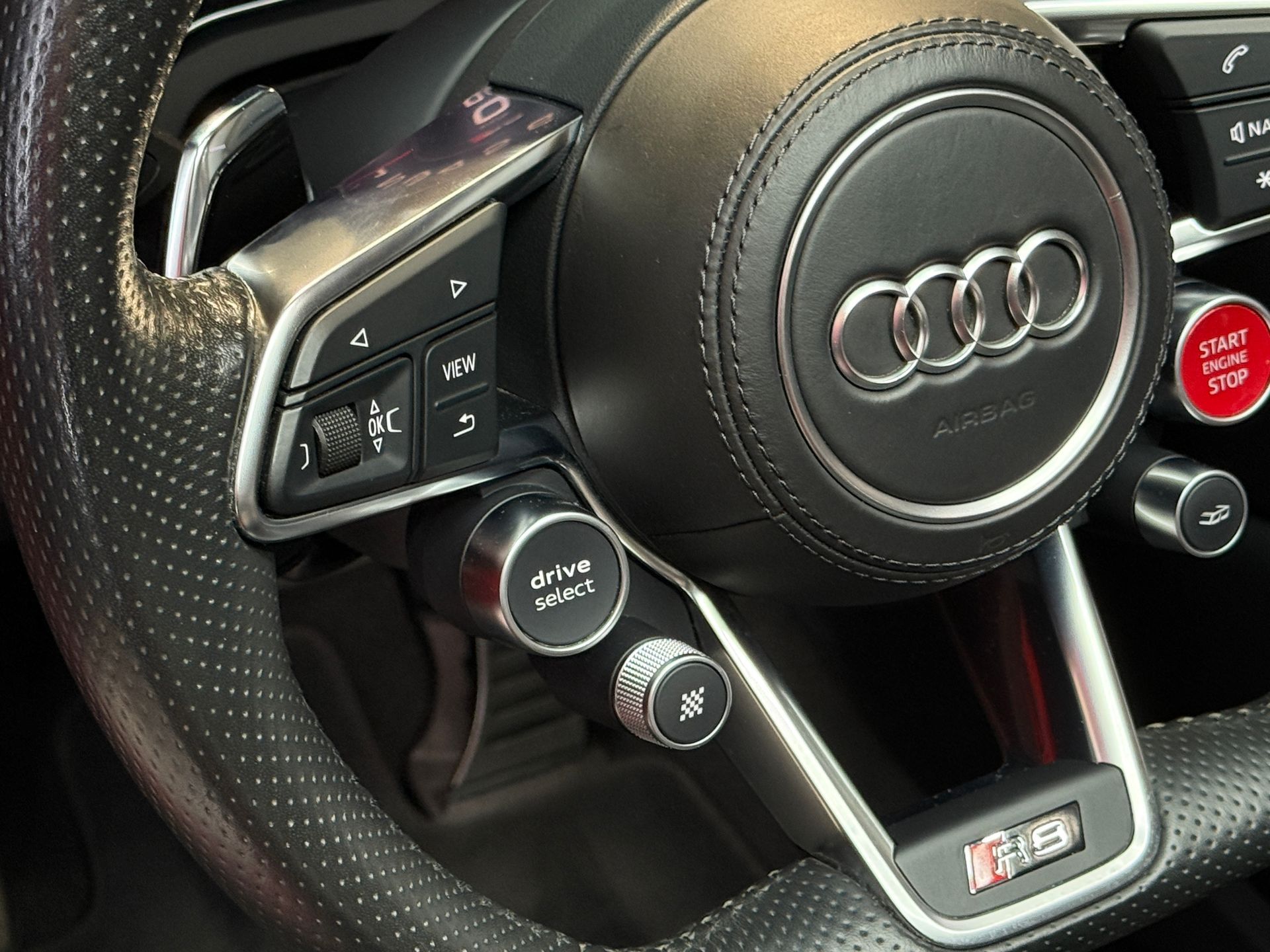 - Volant Performance R8 en cuir avec bouton de démarrage