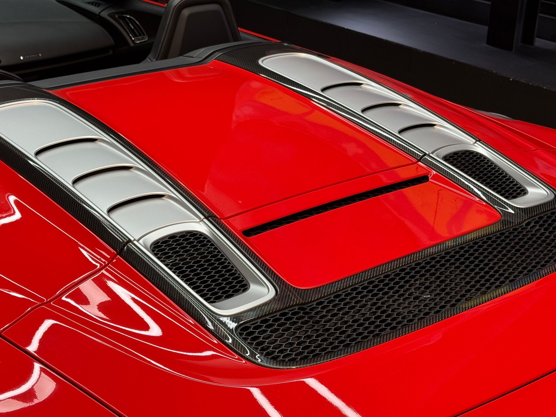 - Capot moteur en carbone brillant
