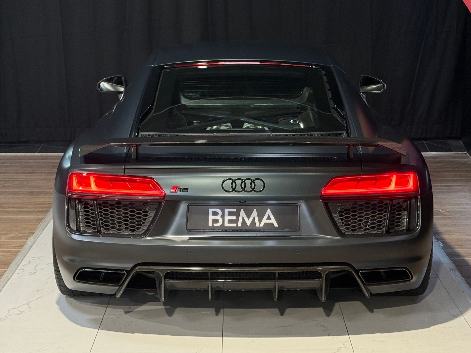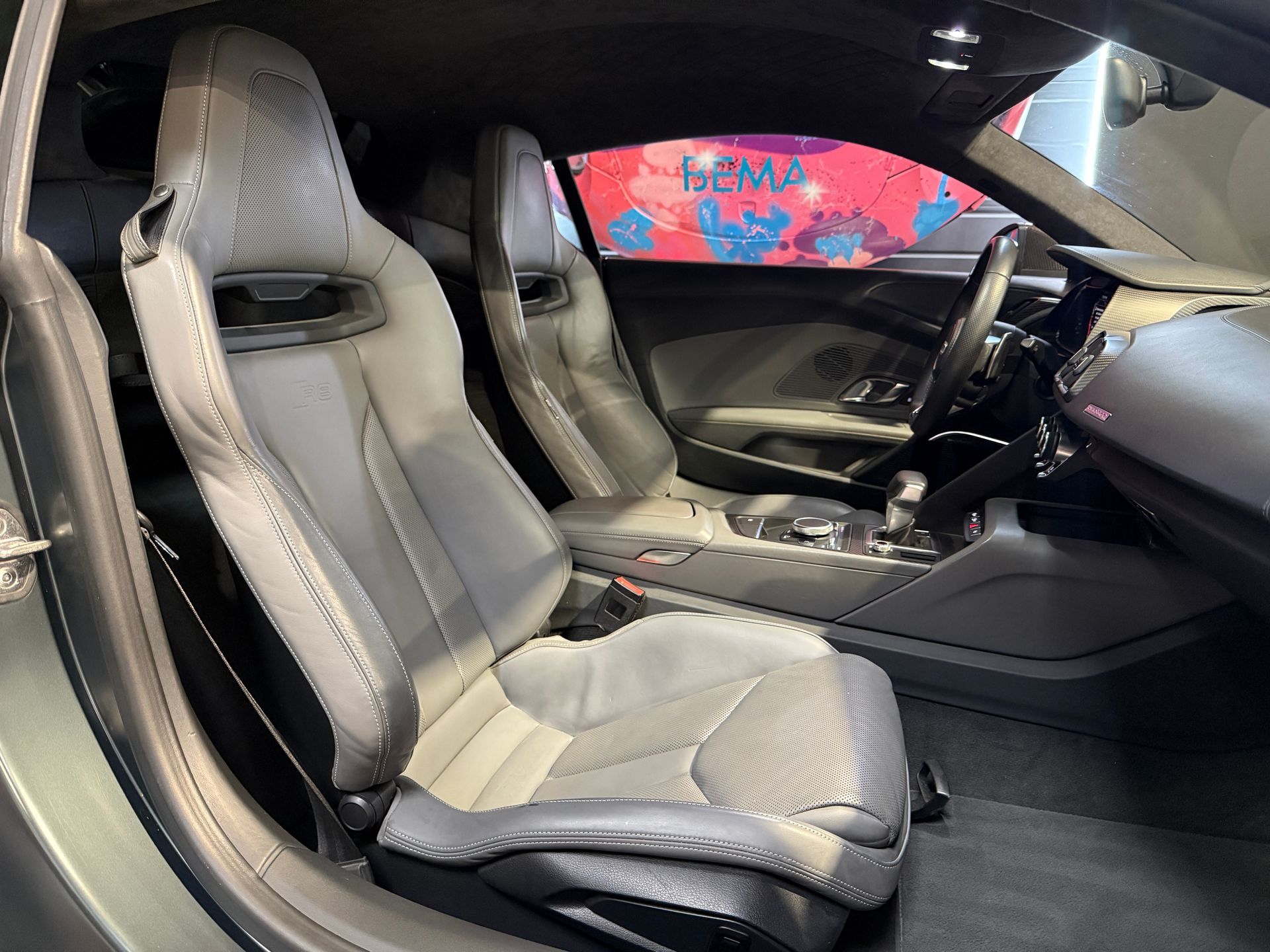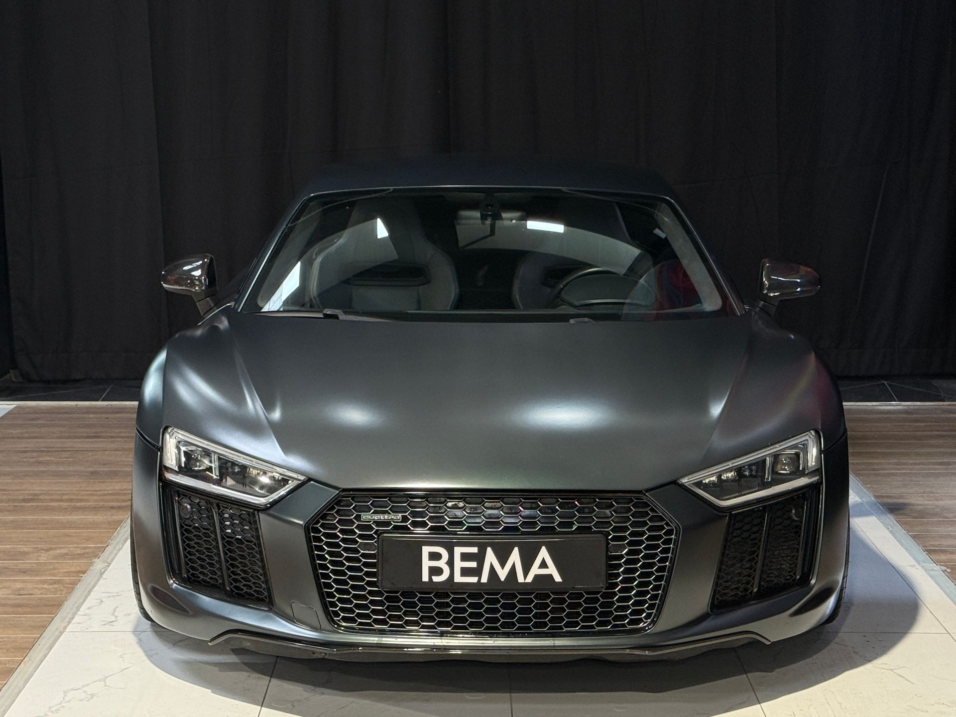 BEMA VITESSE vous propose aujourd’hui cette superbe Audi R8 V10 Plus, présentée dans une configuration unique Audi Exclusive Vert Camouflage Mat sur un intérieur en Cuir Nappa gris, rehaussé d’un ciel de pavillon en Alcantara surpiqué diamant.