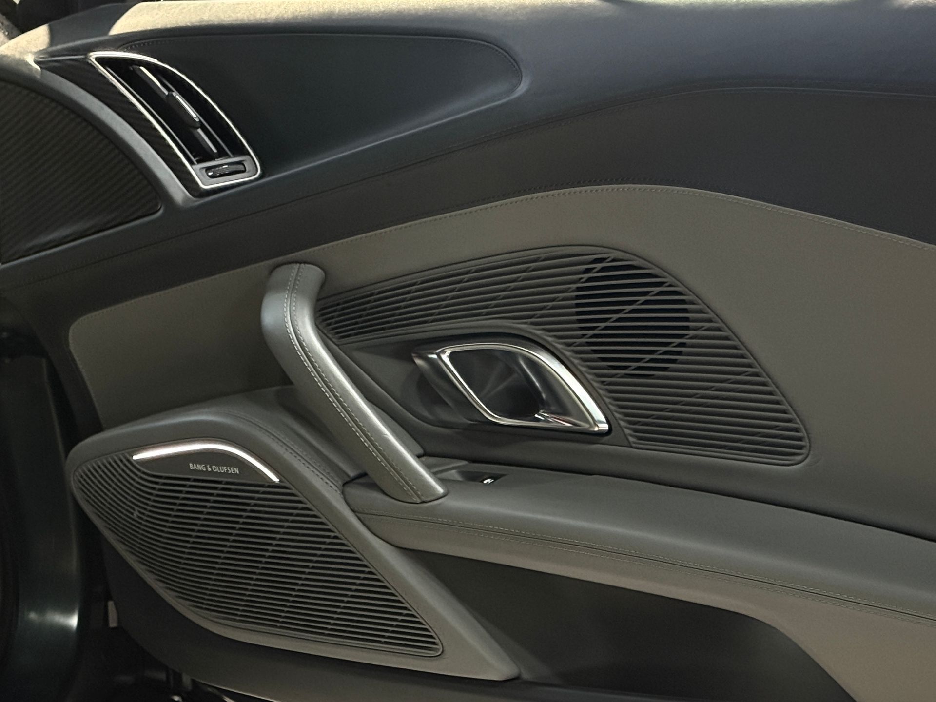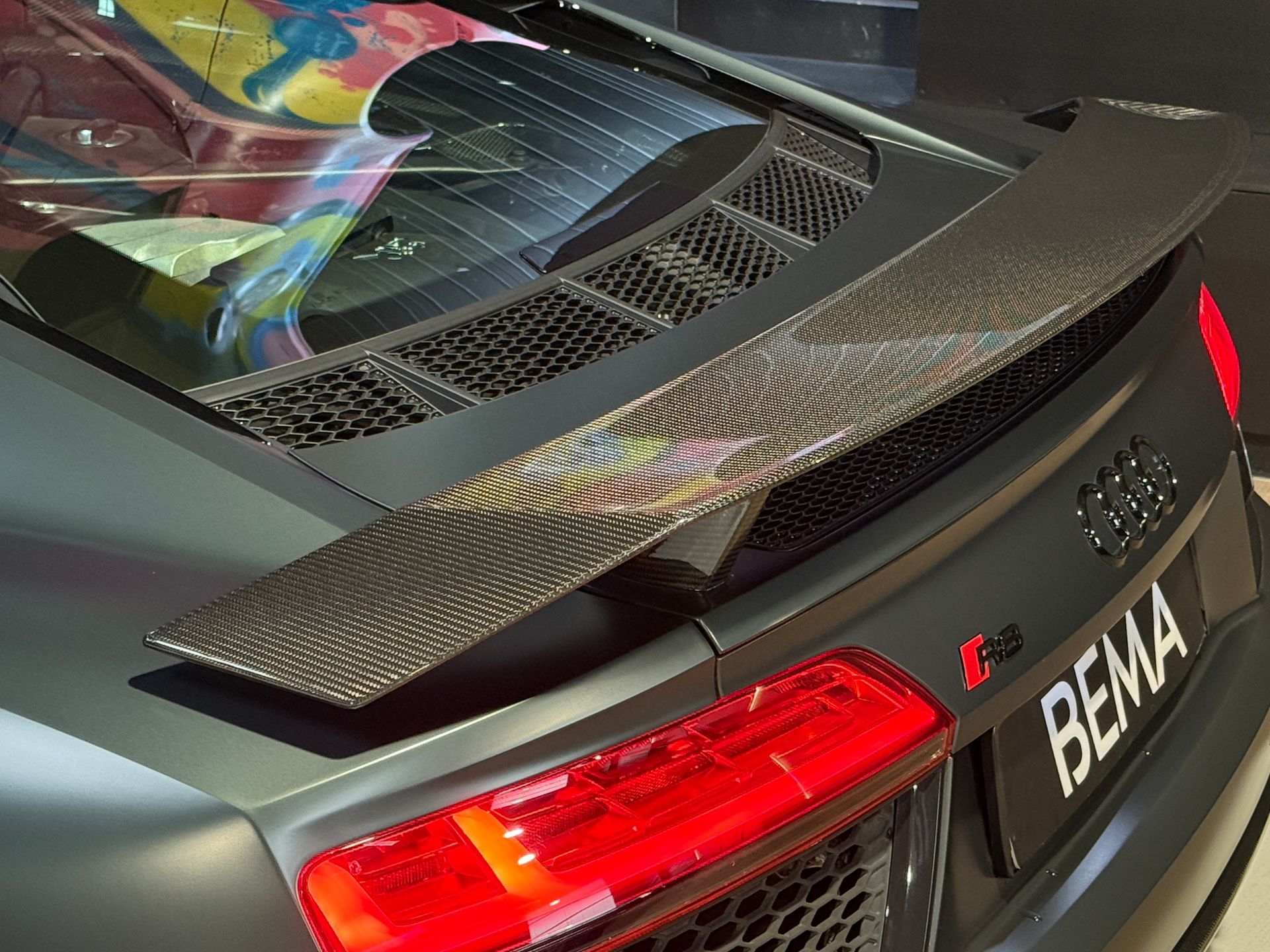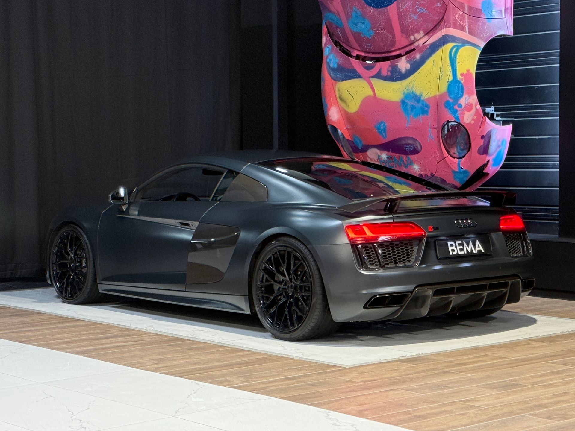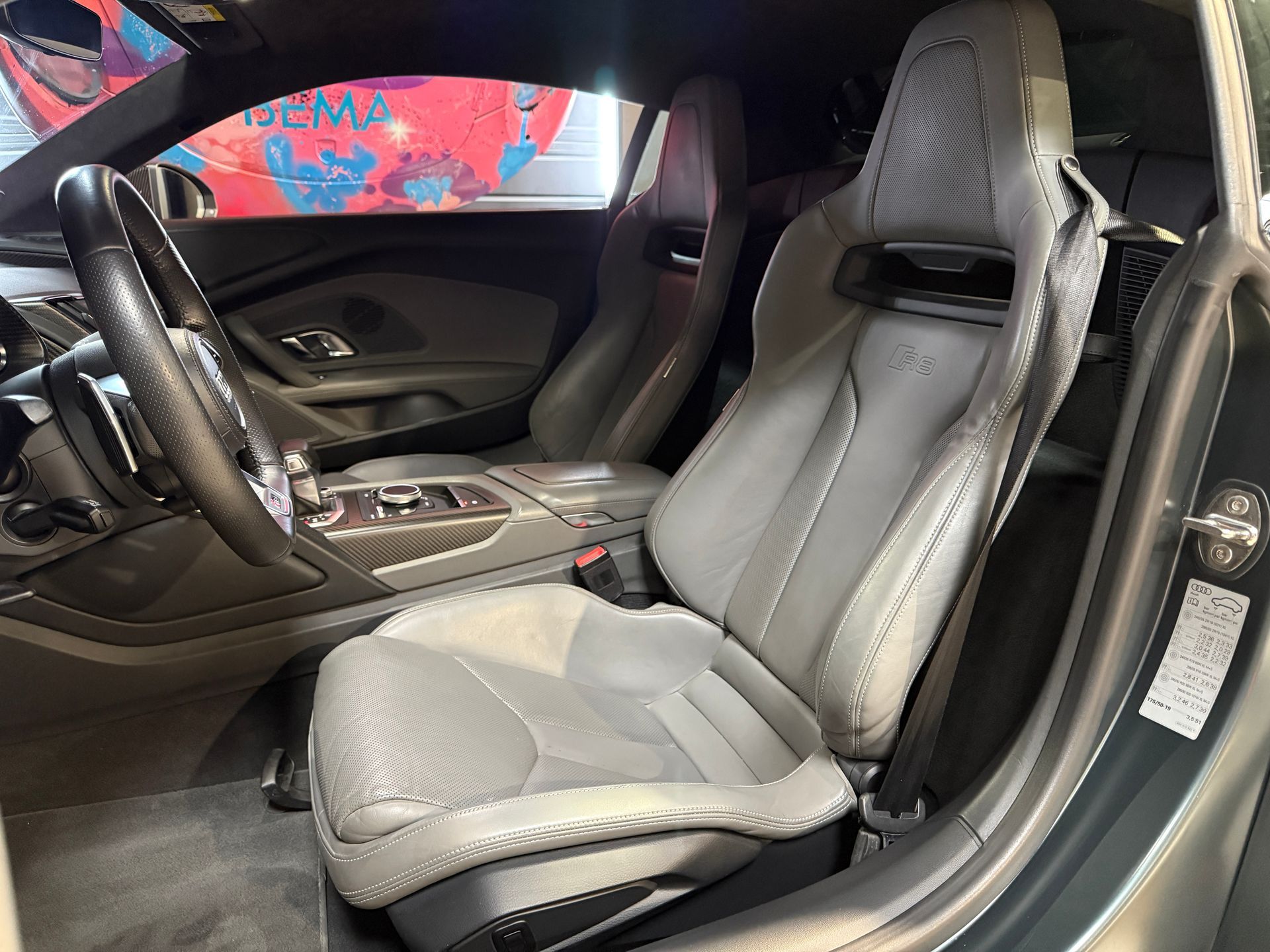 BEMA VITESSE vous propose aujourd’hui cette superbe Audi R8 V10 Plus, présentée dans une configuration unique Audi Exclusive Vert Camouflage Mat sur un intérieur en Cuir Nappa gris, rehaussé d’un ciel de pavillon en Alcantara surpiqué diamant.