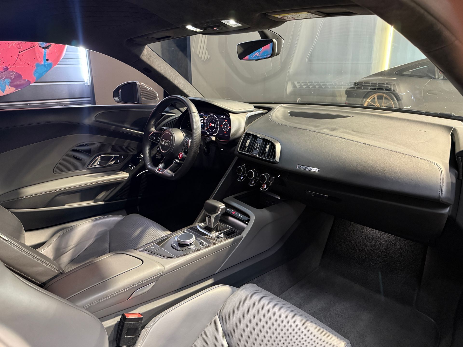Cet exemplaire se distingue par un niveau d’équipement exceptionnel, combinant sportivité pure et raffinement Audi Exclusive : peinture mate, suspension Magnetic Ride, direction dynamique, phares laser et échappement sport. Une configuration radicale et élégante, rare sur le marché.
