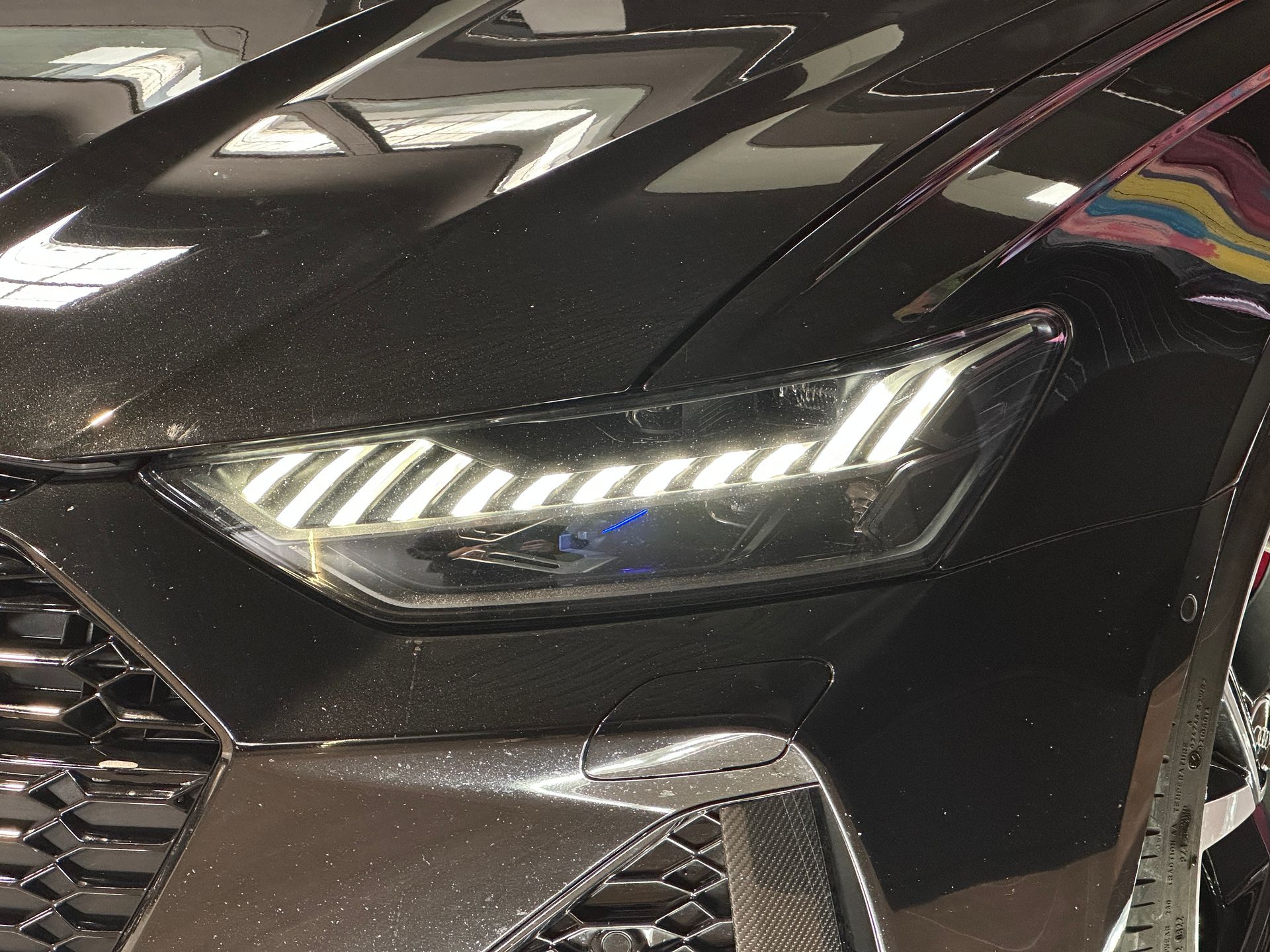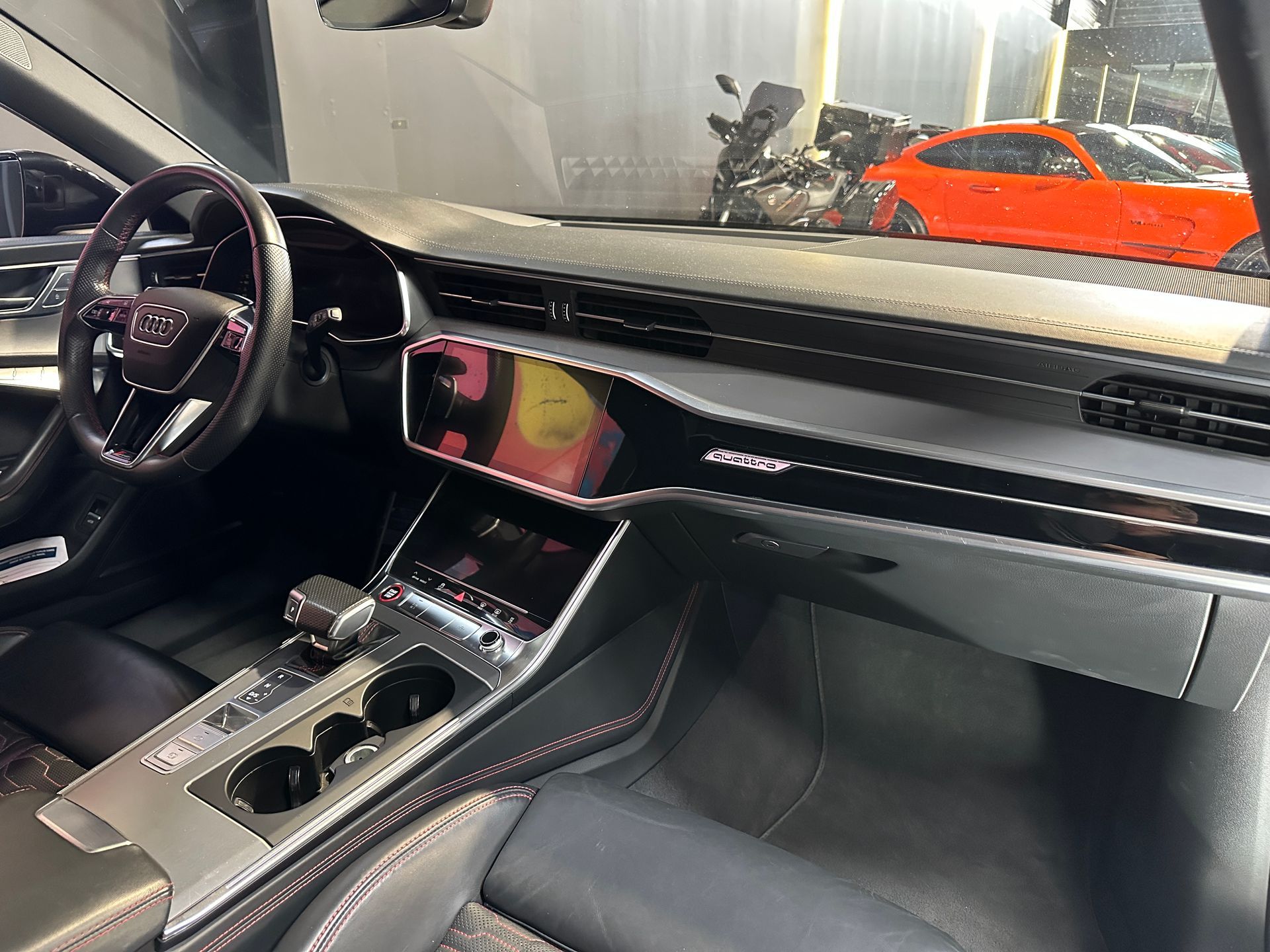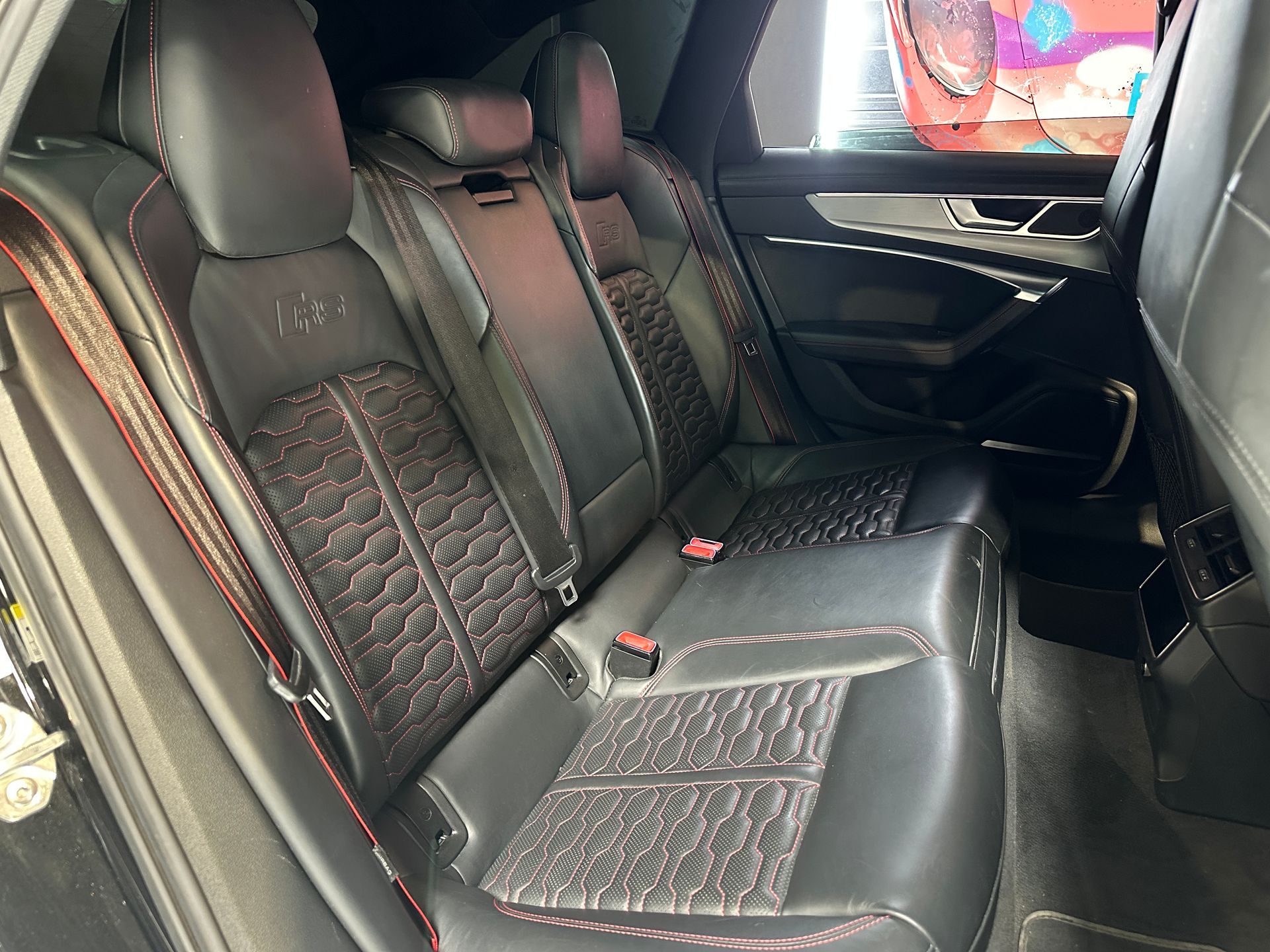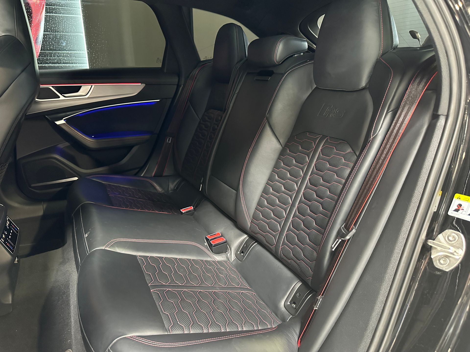 Notre exemplaire se distingue par une configuration exclusive comprenant le Pack Dynamique RS Plus, le châssis Sport RS Plus avec DRC, et l’échappement Sport RS. L’extérieur est sublimé par le Pack Esthétique Carbone, les jantes Audi Sport 22’’ finition noir anthracite poli, et les anneaux Audi noirs brillants.