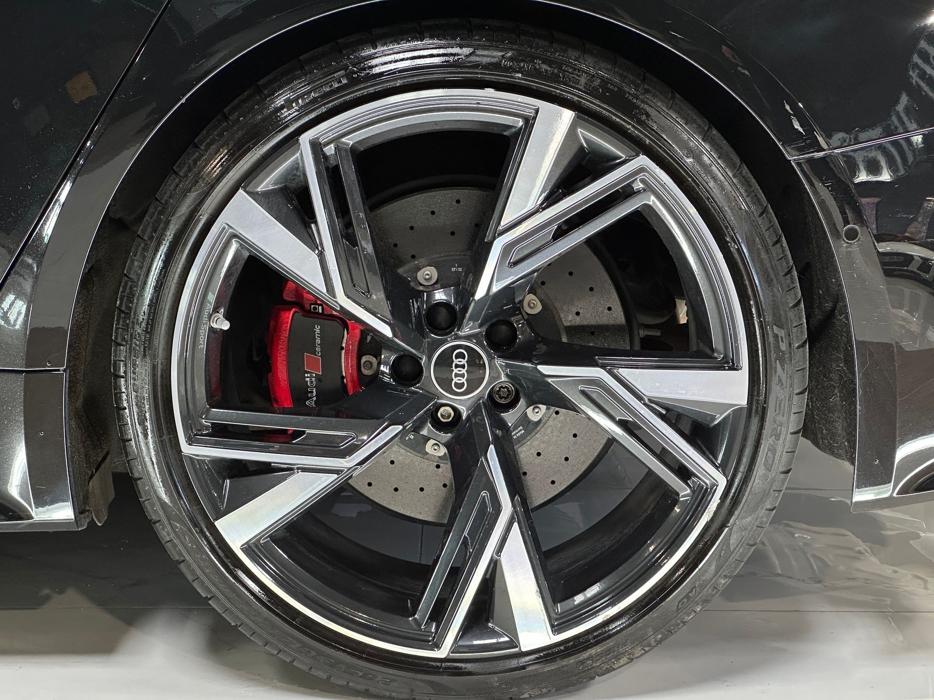 52A / W55 – Jantes 22’’ Audi Sport 5 branches trapézoïdales, finition noir anthracite brillant poli