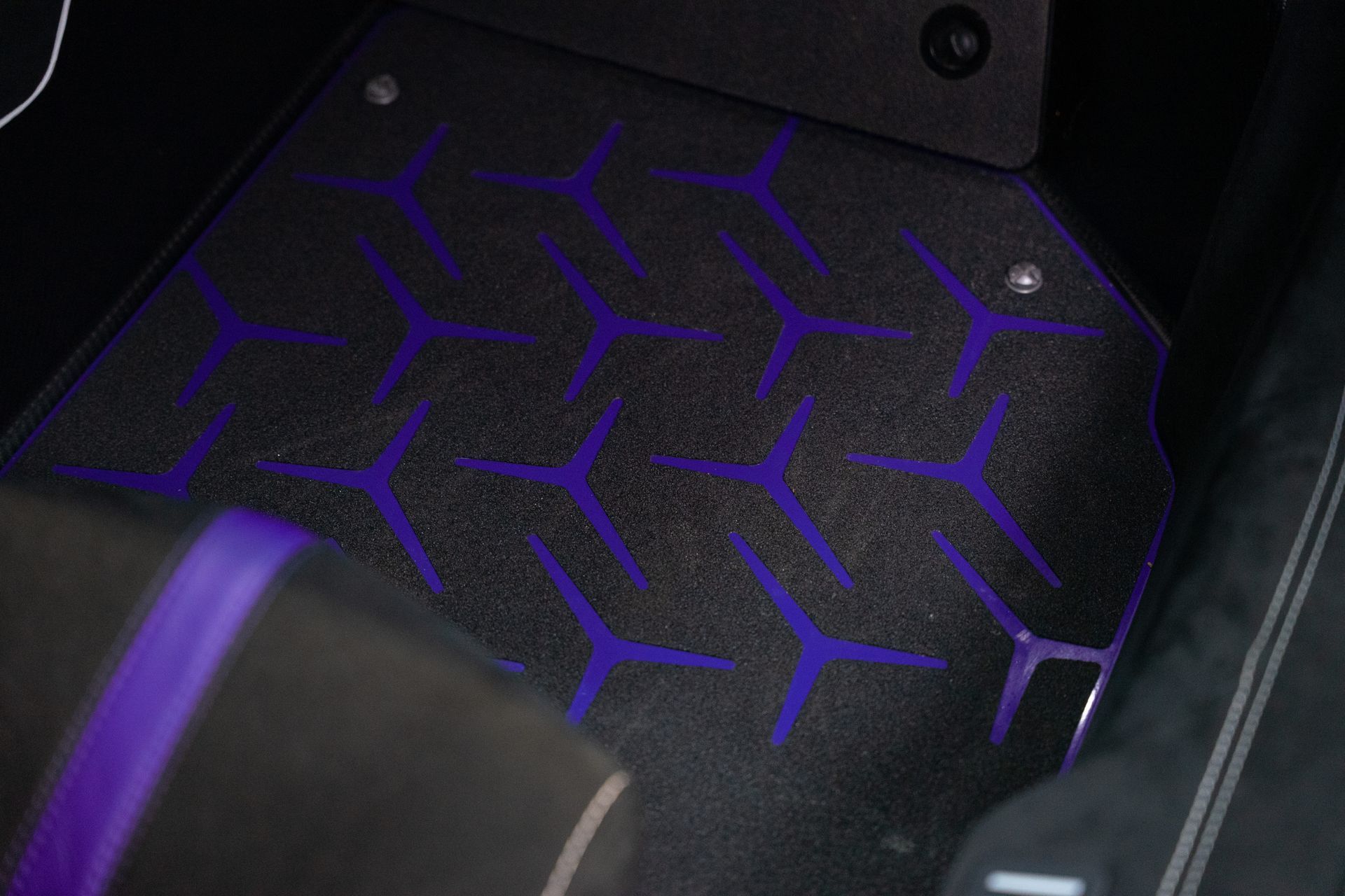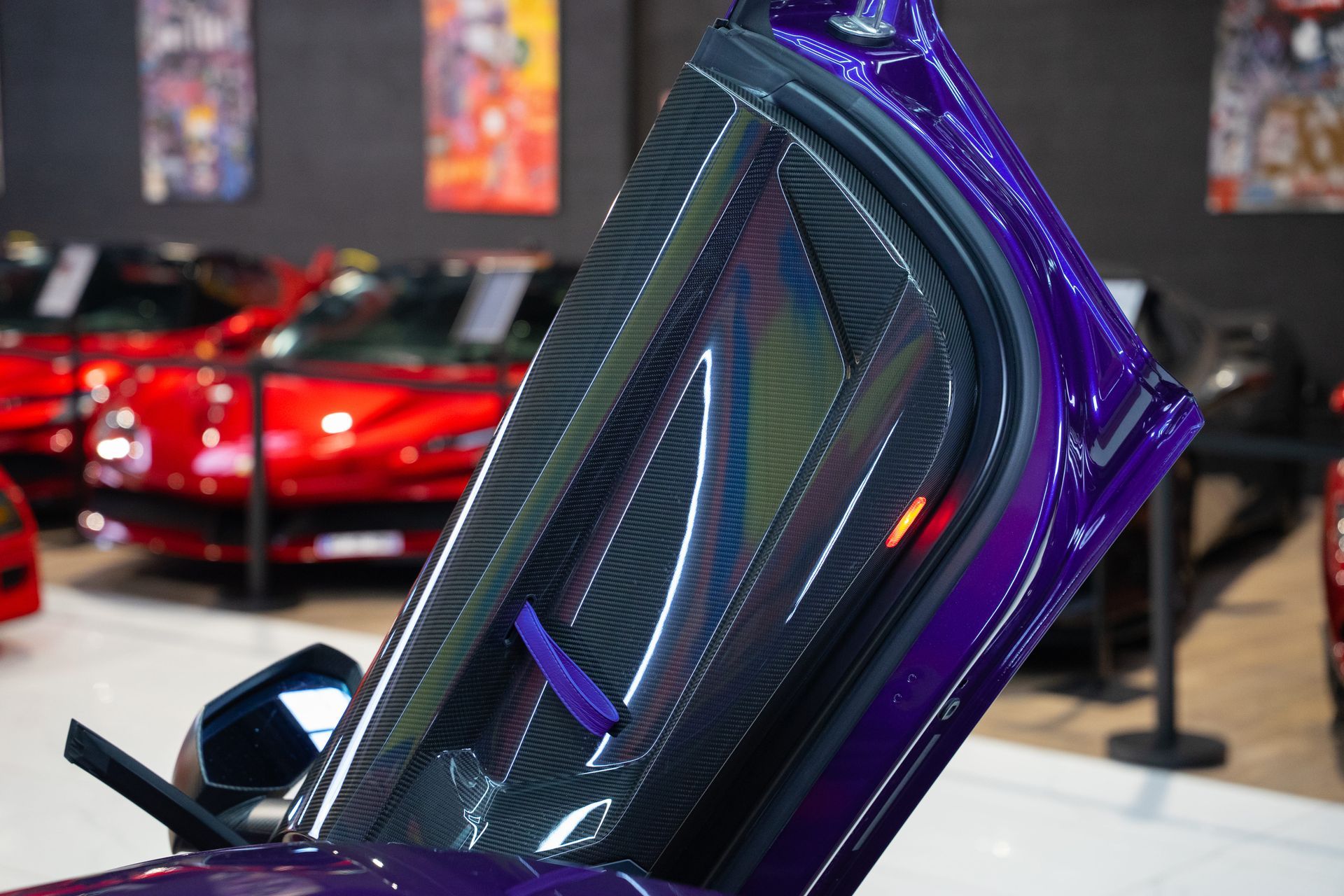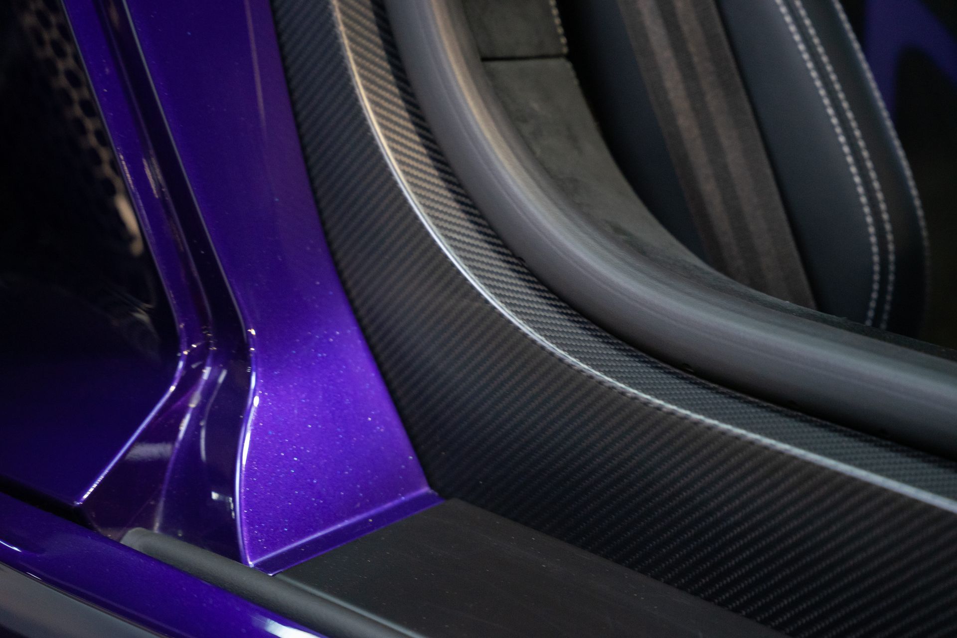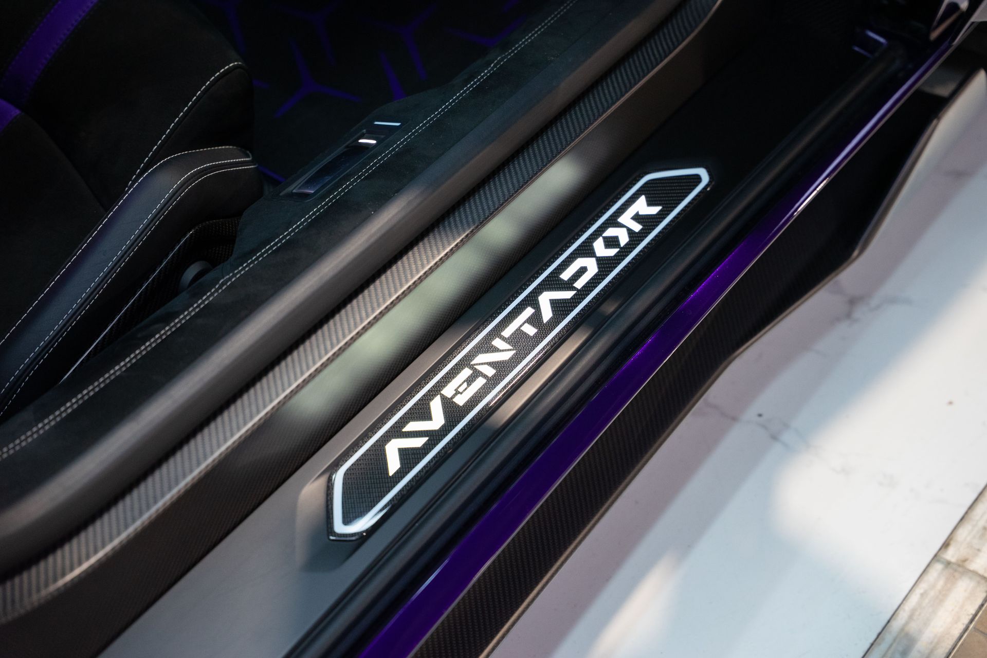 Notre exemplaire se distingue par une configuration élégante et agressive à la fois, associant la peinture Viola Aletheia Ad Personam à de nombreux éléments en carbone mat, des jantes forgées 23 pouces et un intérieur Noir rehaussé de surpiqûres Bianco Leda, créant un contraste aussi exclusif que racé.