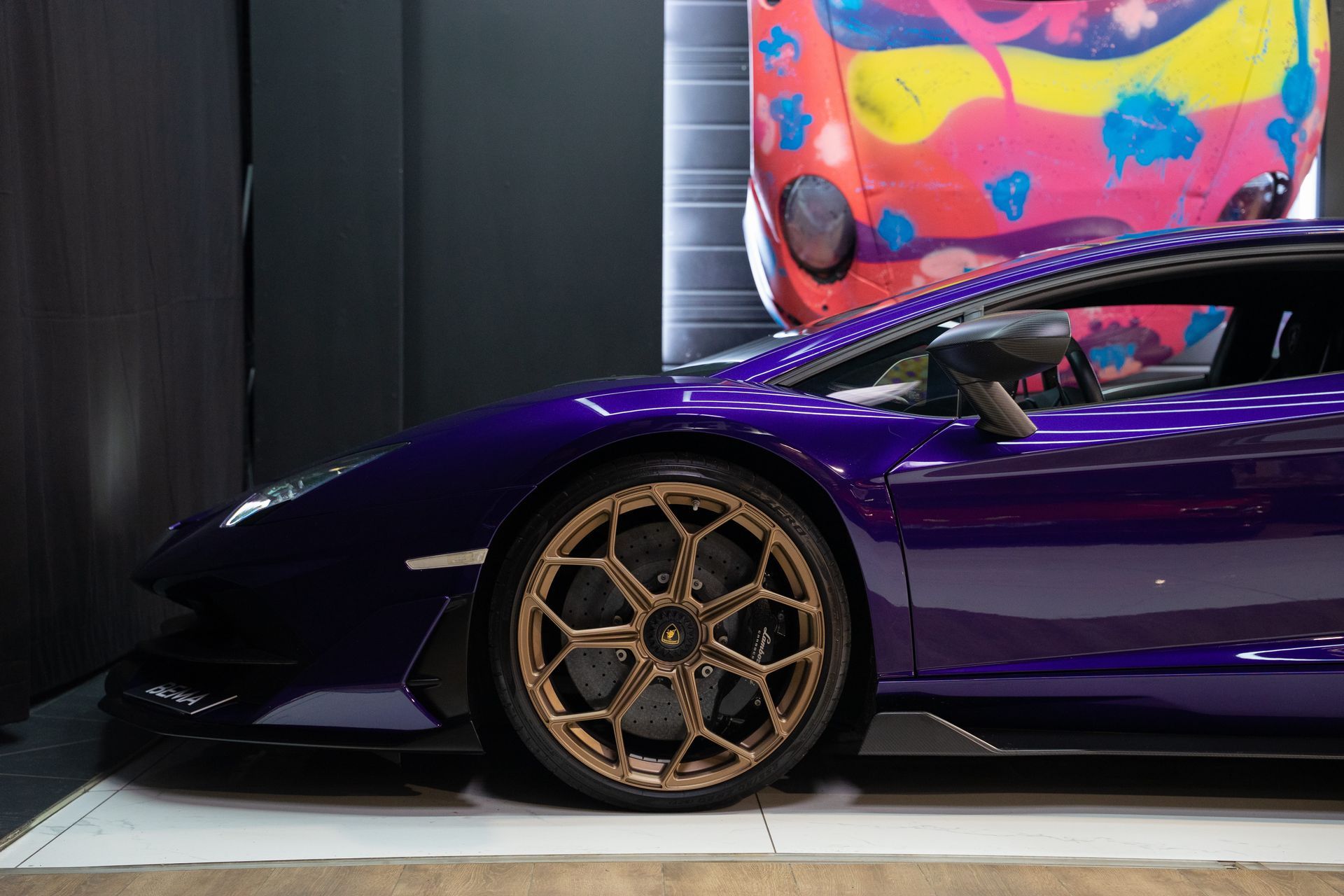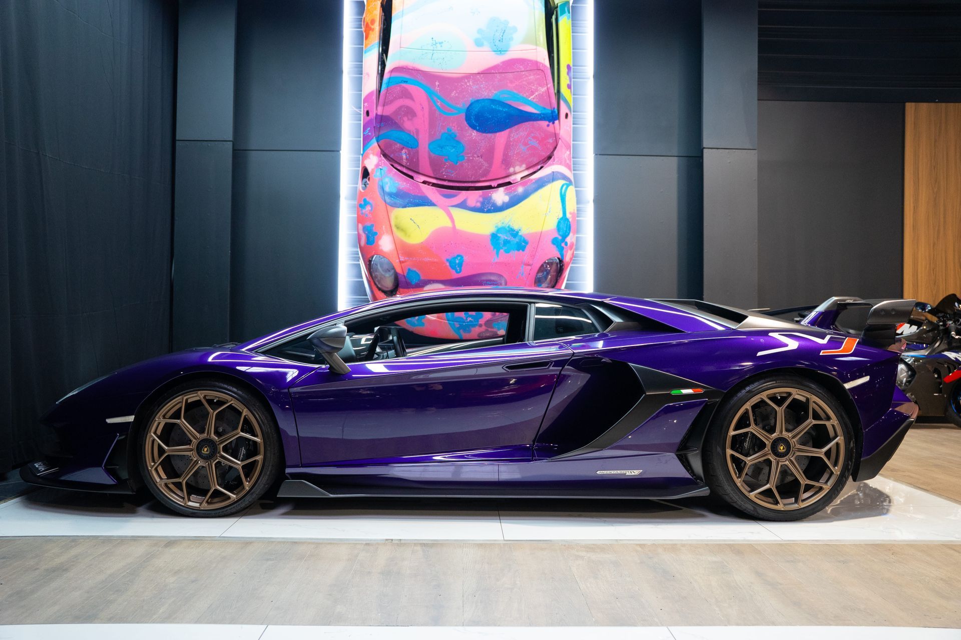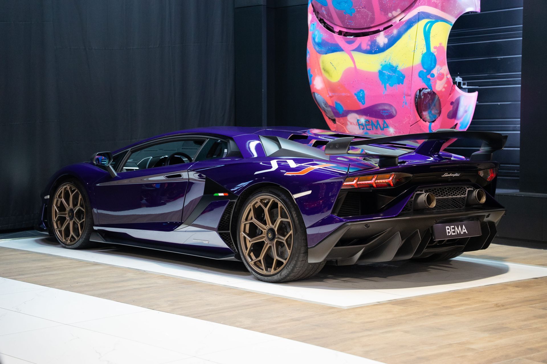 BEMA VITESSE vous propose aujourd’hui cette Lamborghini Aventador SVJ, présentée dans une configuration Ad Personam rare et particulièrement expressive, sublimée par la teinte Viola Aletheia.