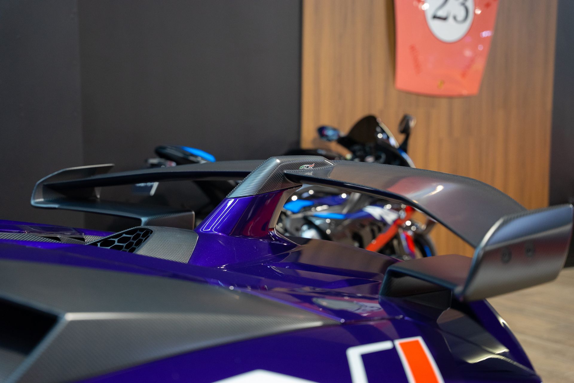 - Capot en Y et prises d’air fixes en carbone mat