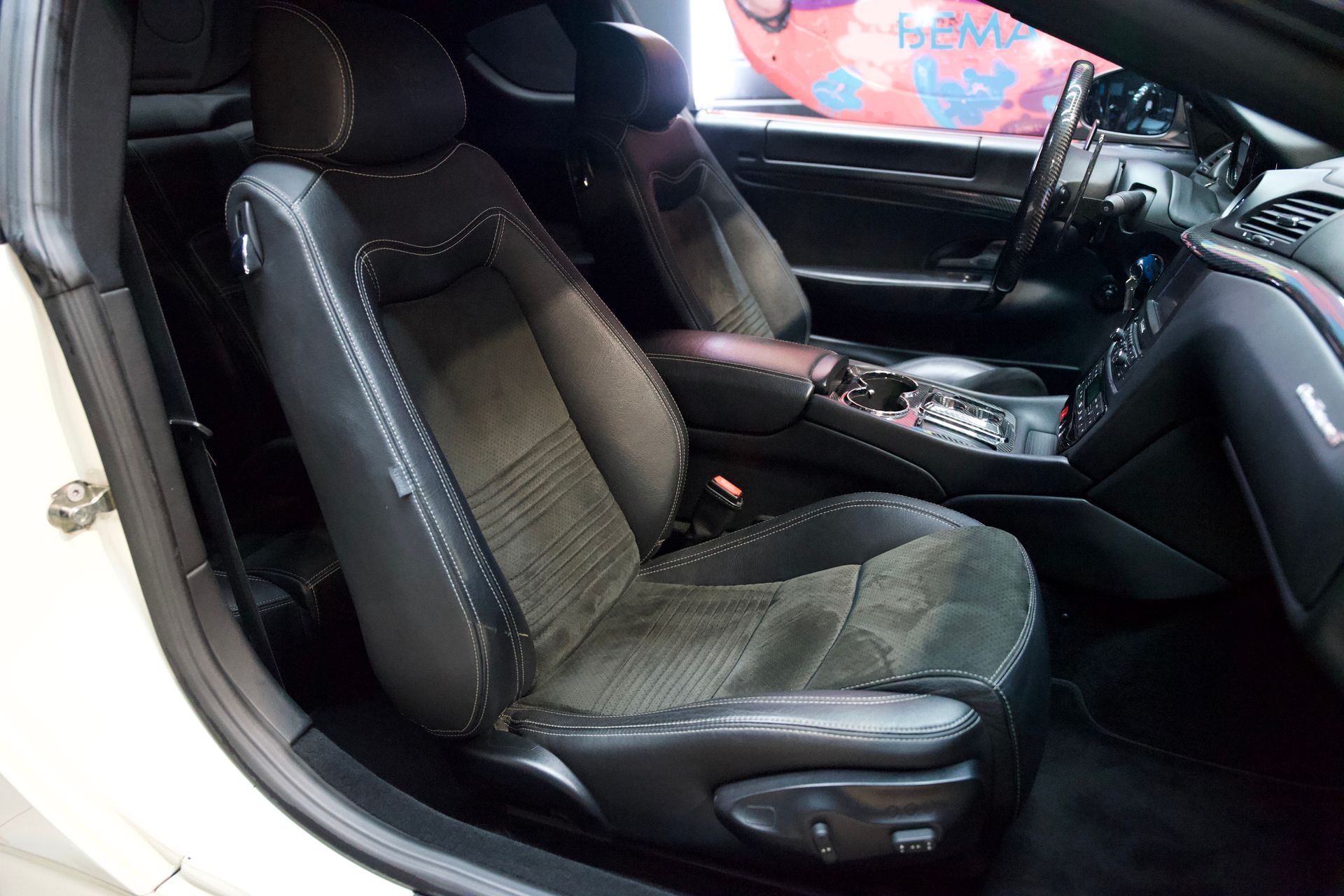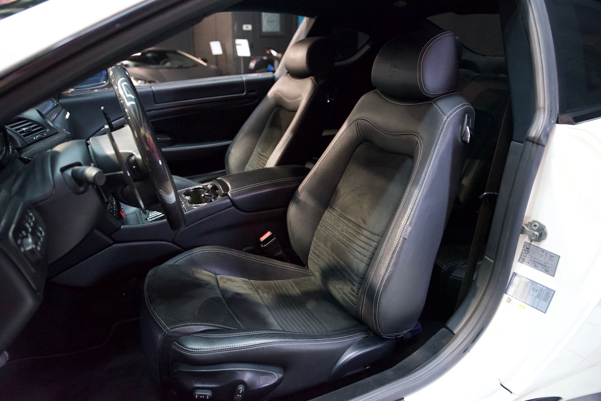 noir mêlant cuir, Alcantara et fibre de carbone.