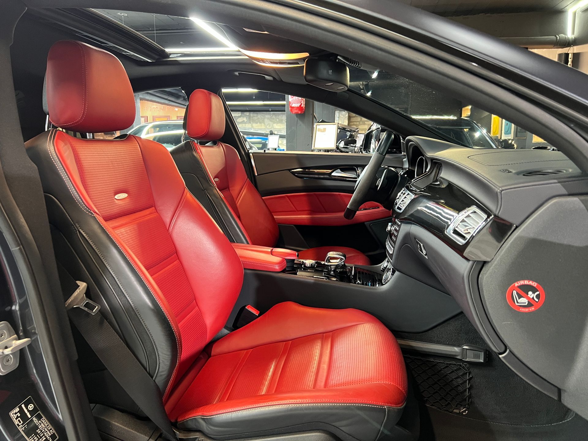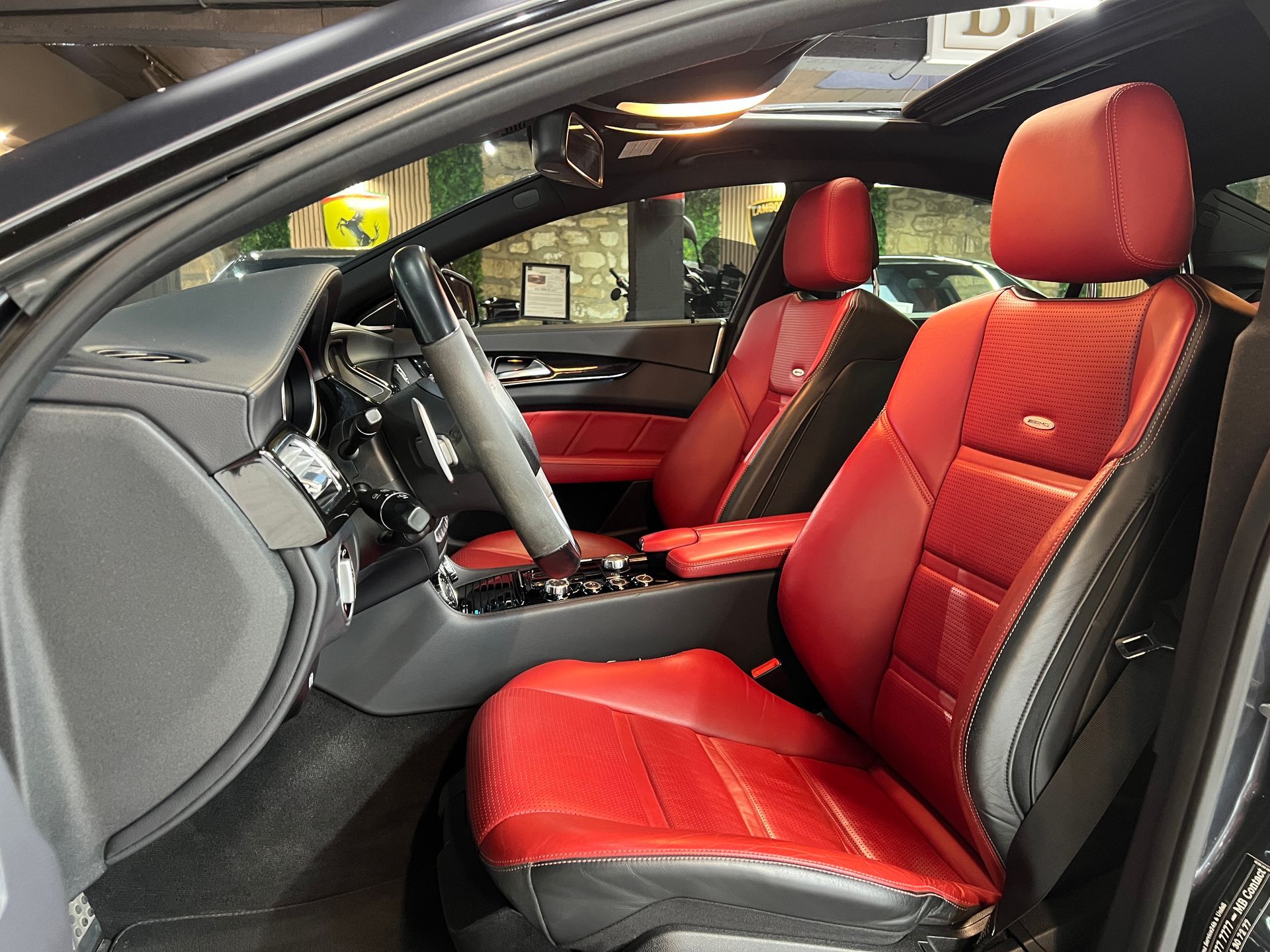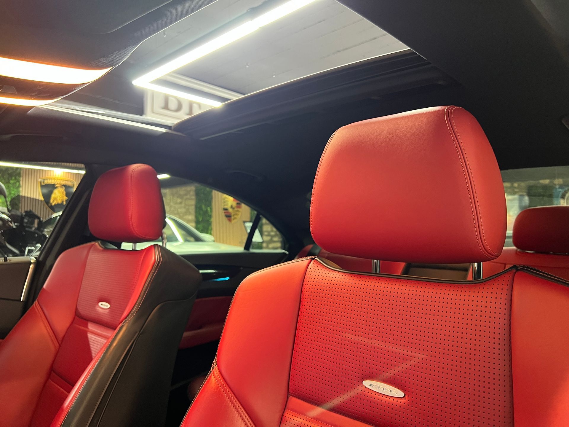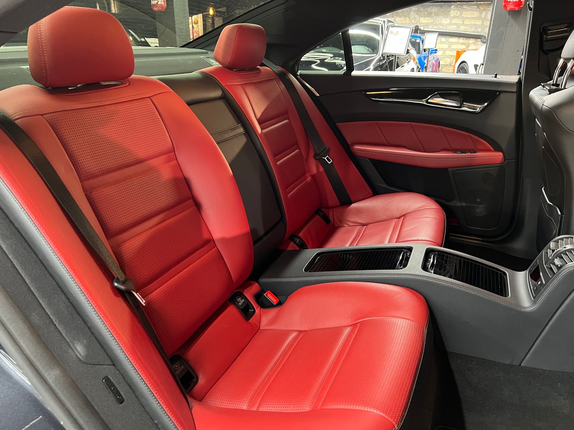 - Sièges en cuir rouge