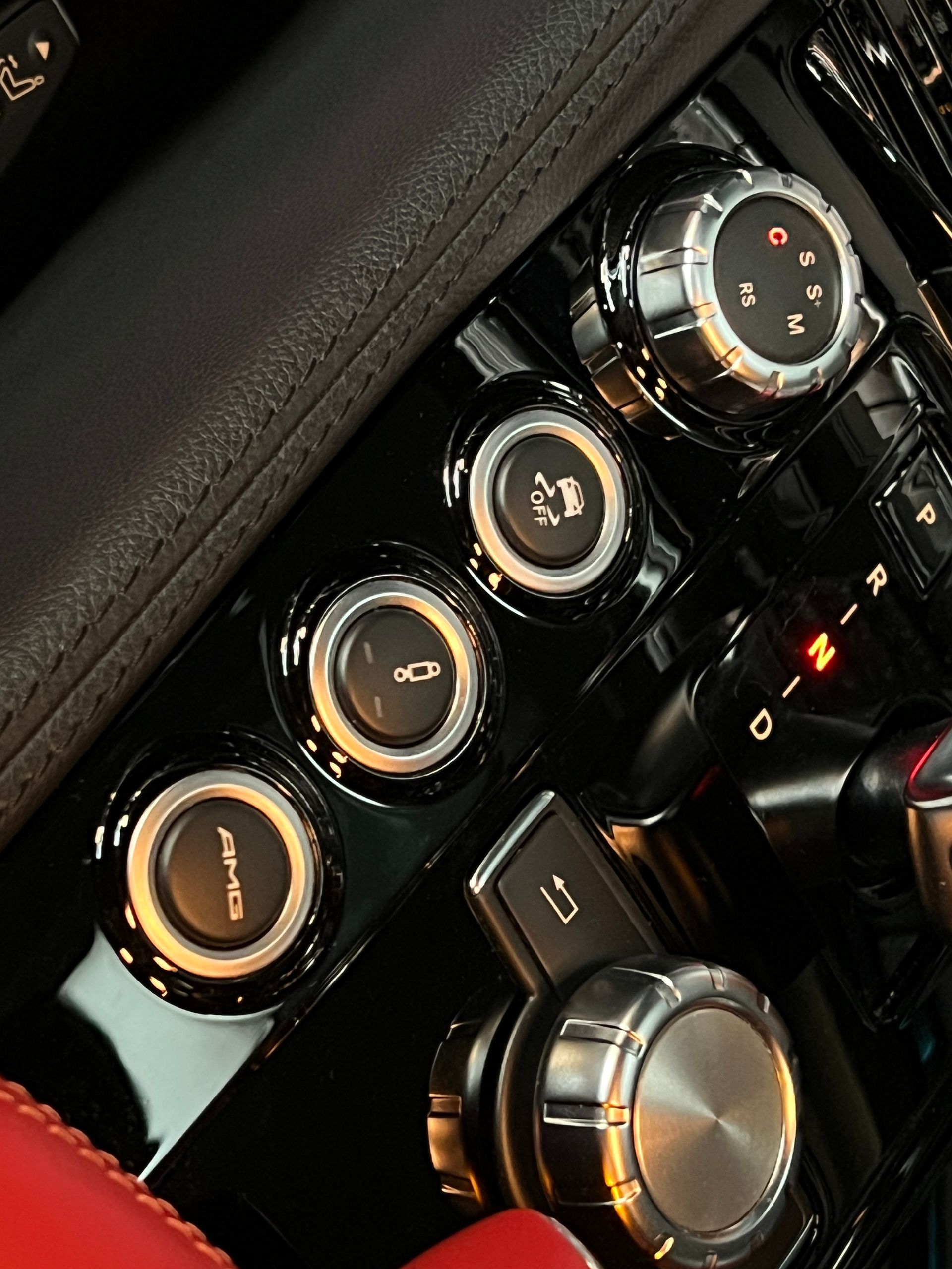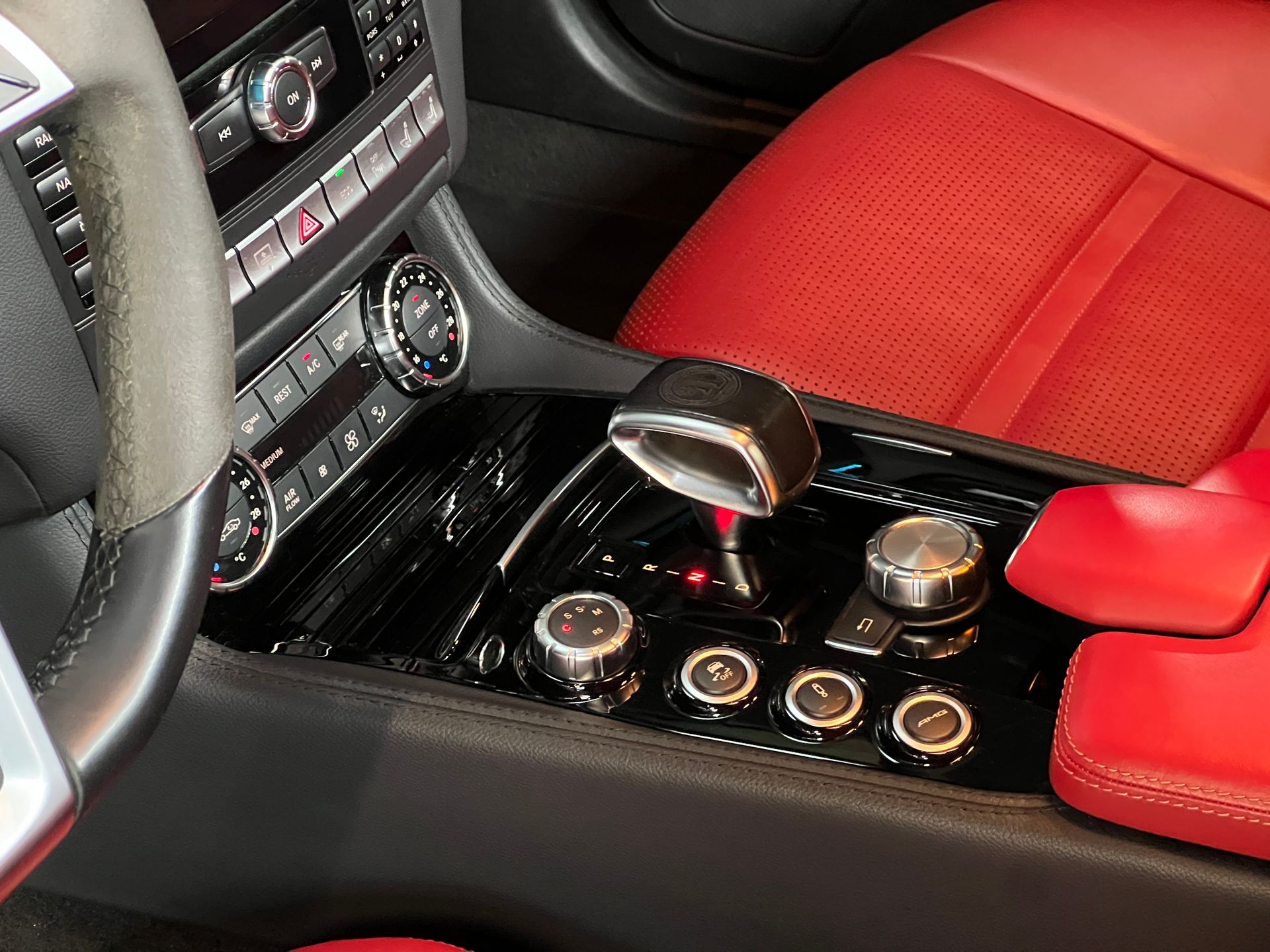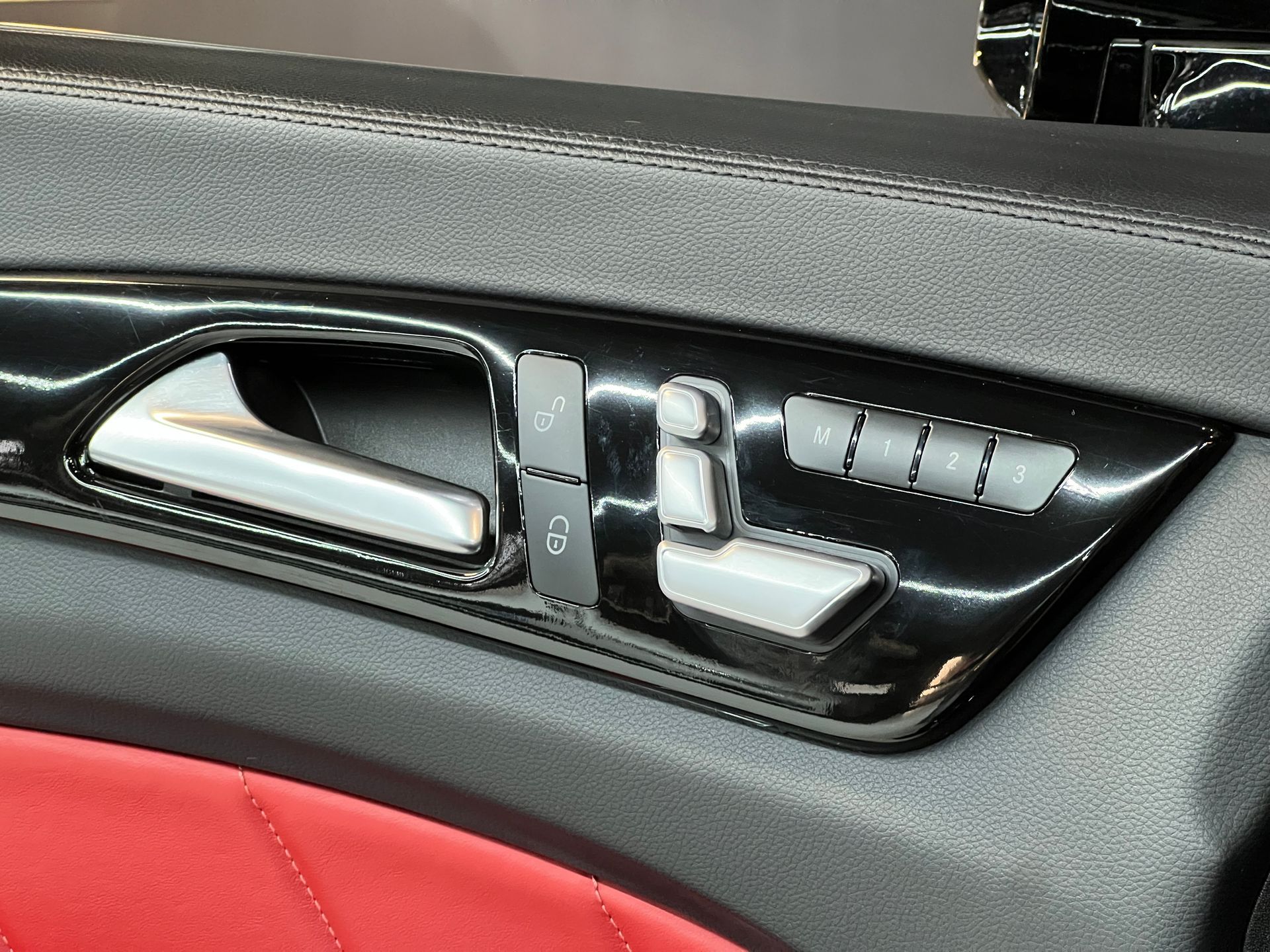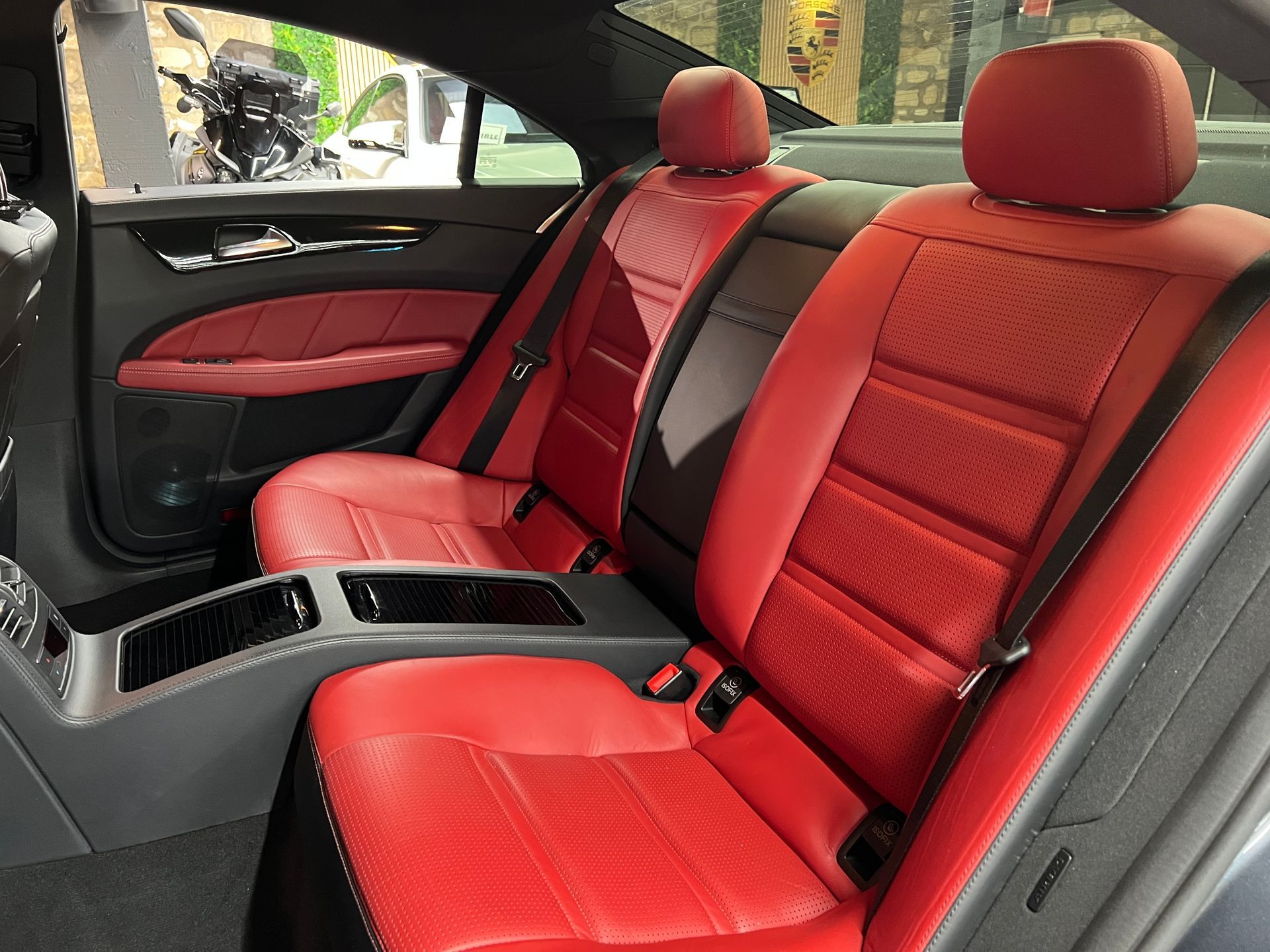 - Sièges en cuir rouge