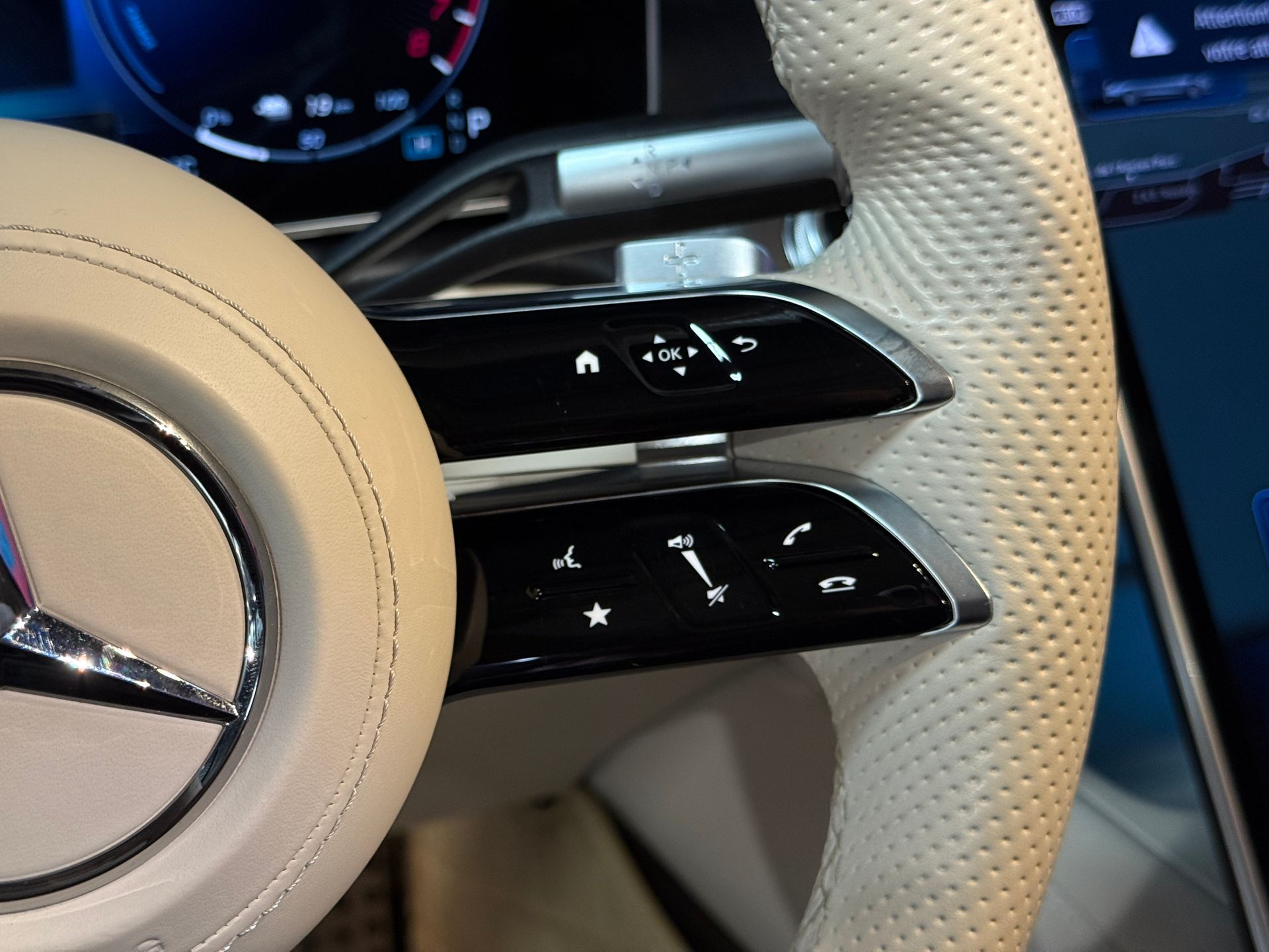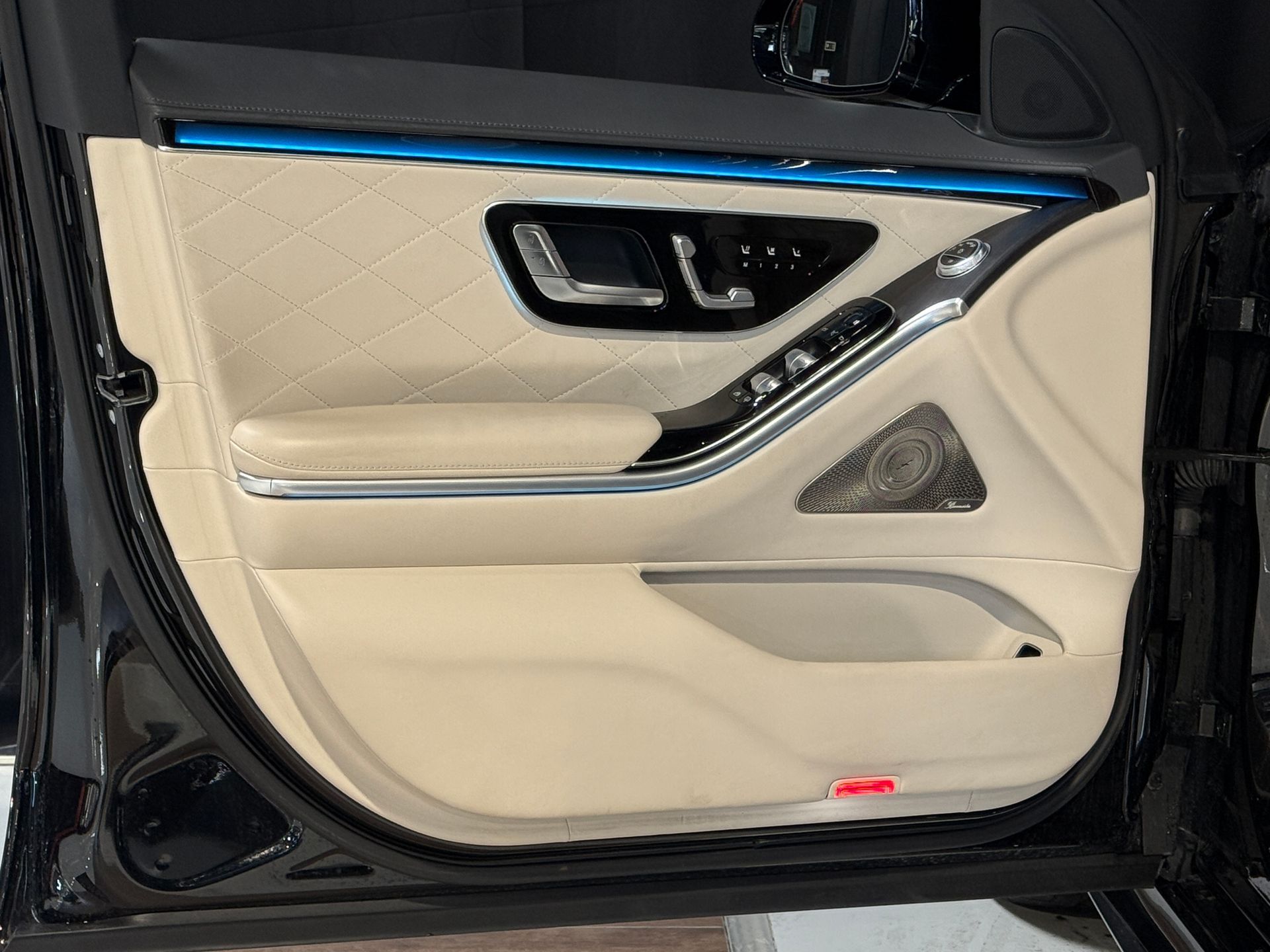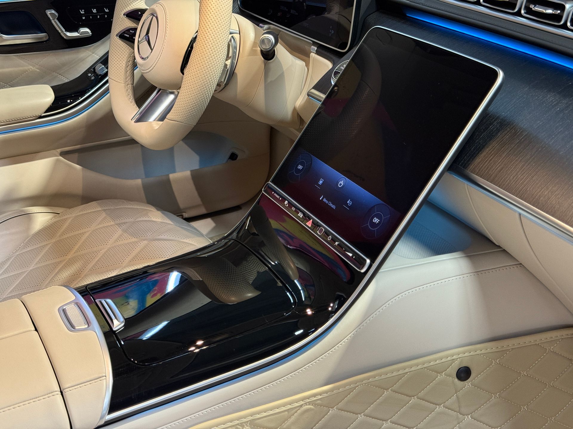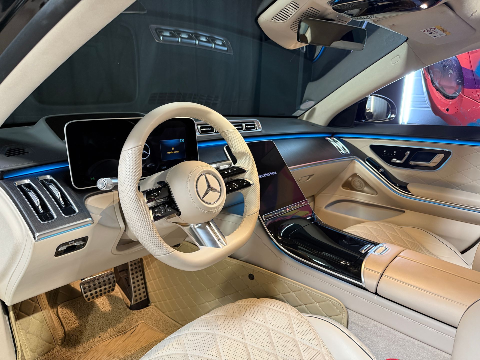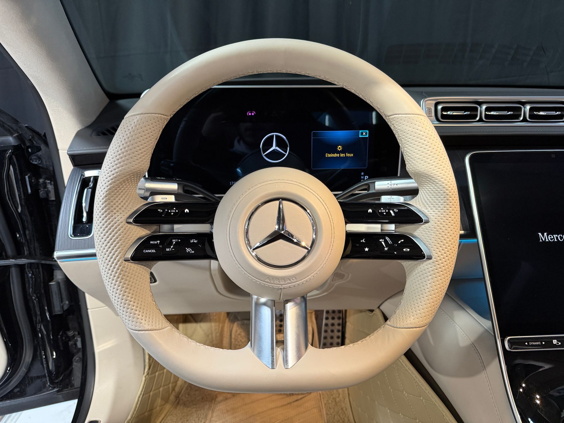Notre exemplaire se distingue par une configuration exceptionnelle : Pack Chauffeur, sièges massants arrière, cuir Exclusive beige, système audio Burmester 3D, Affichage tête haute, et Pack AMG Line extérieur.