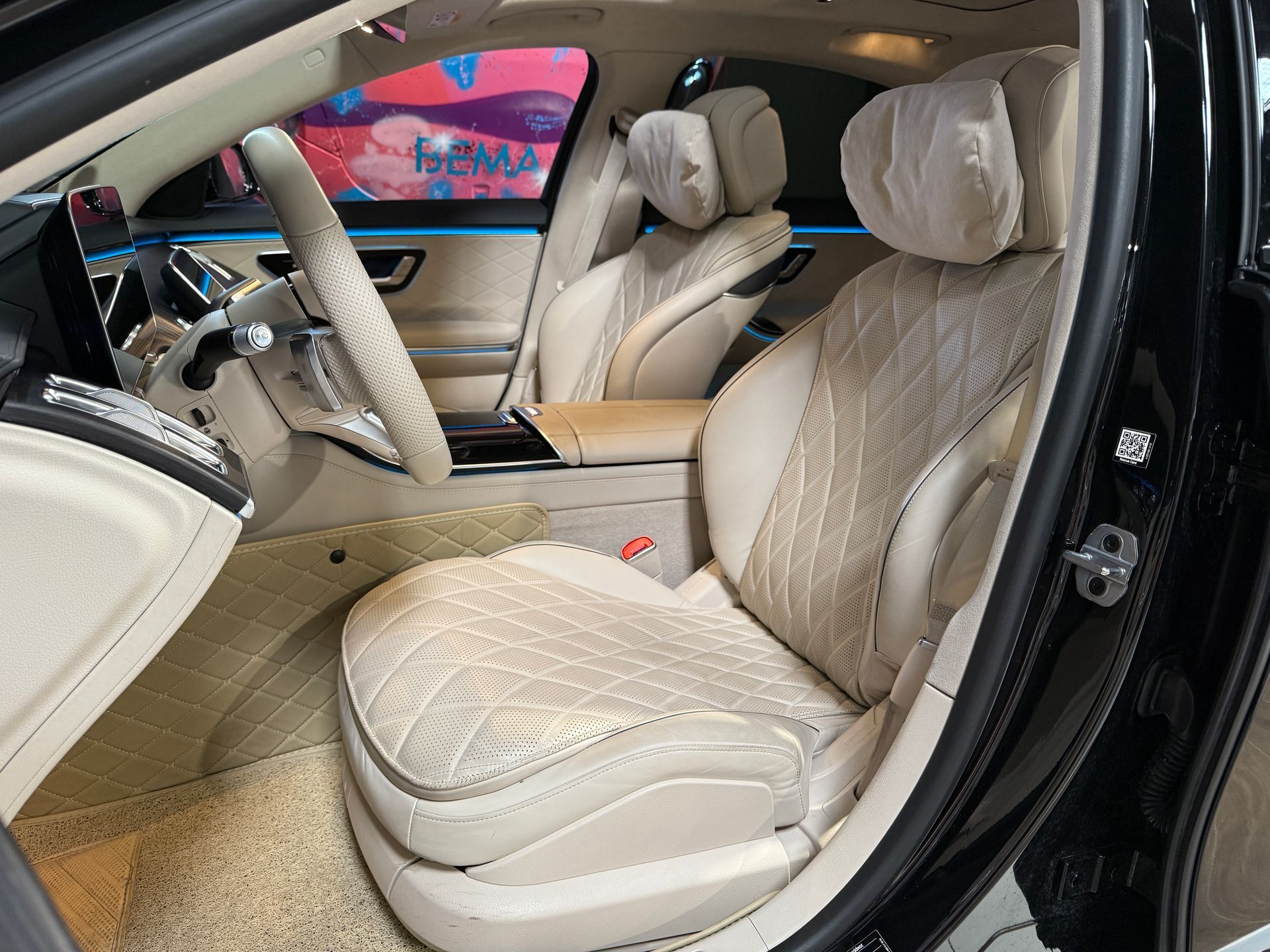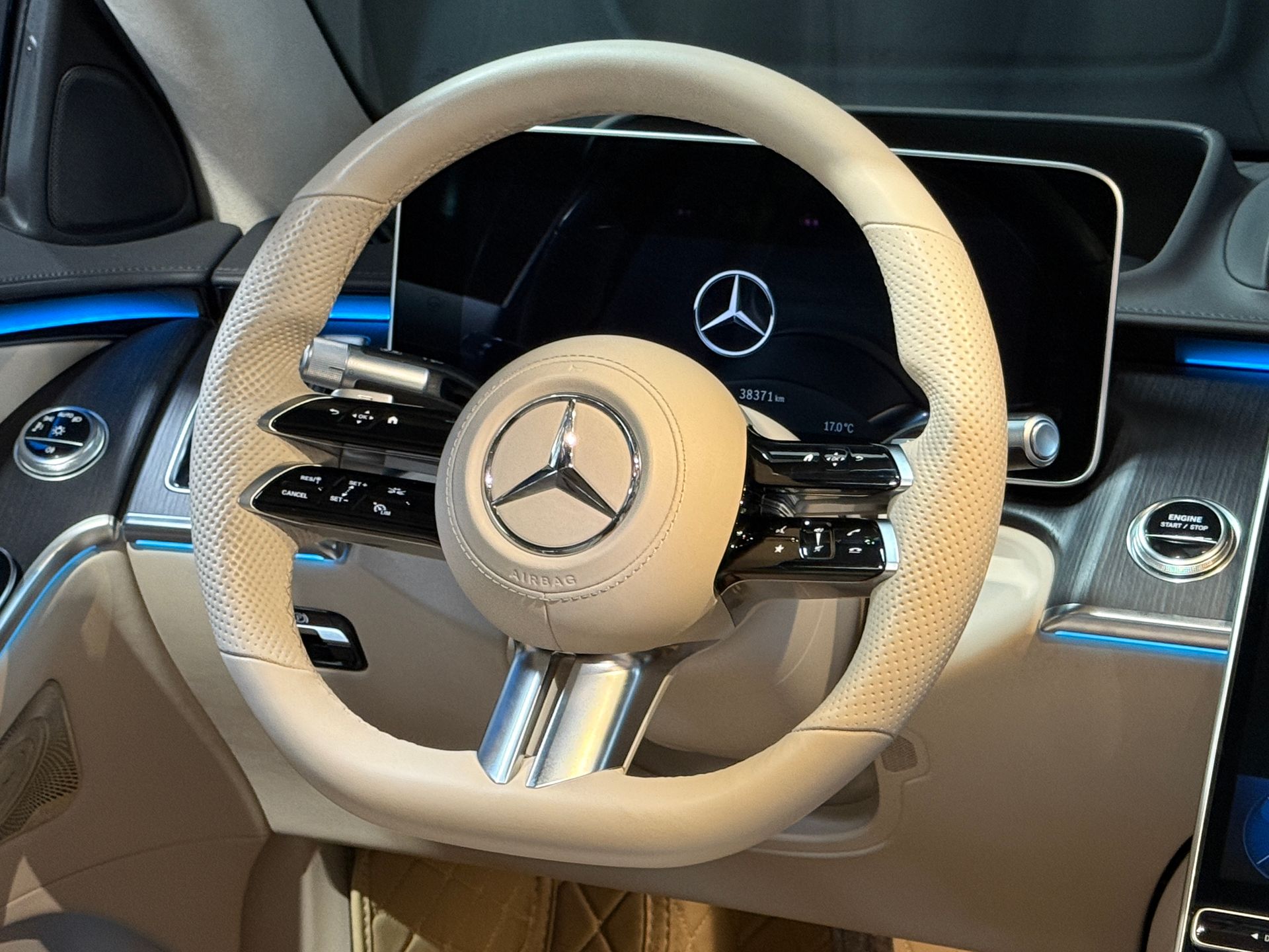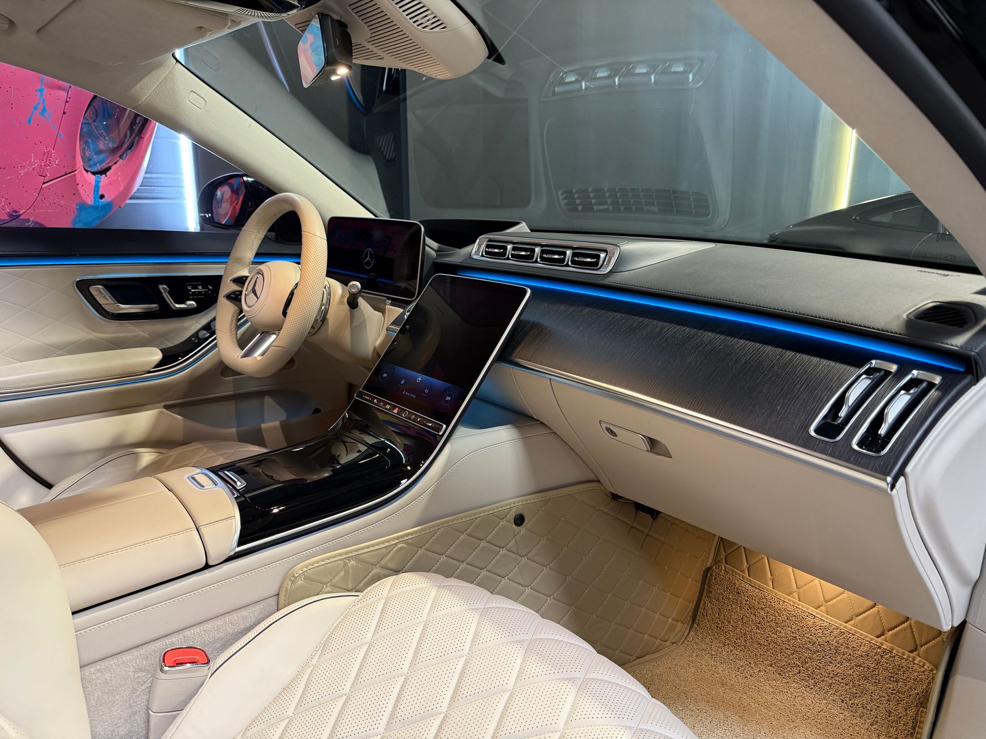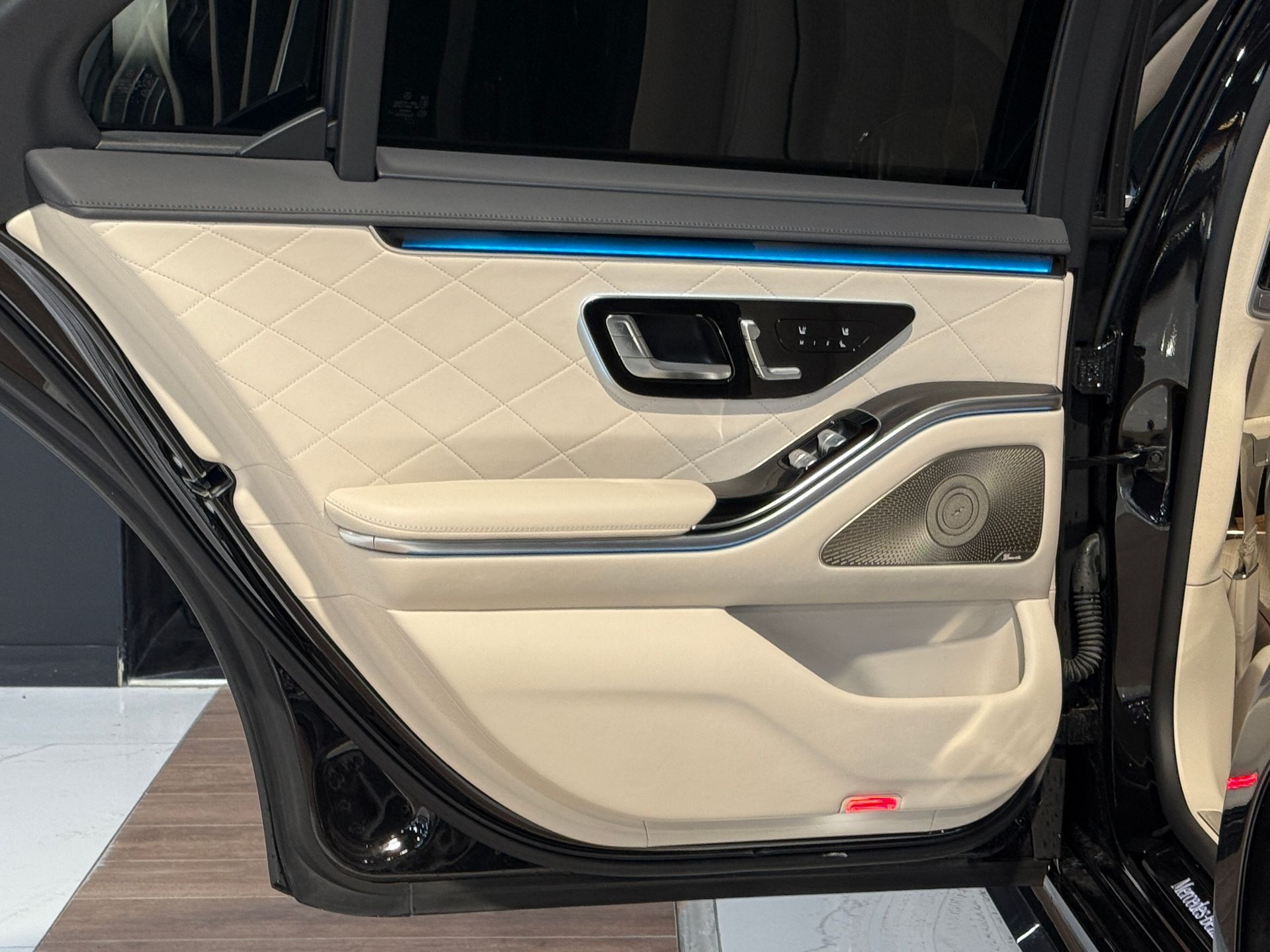 Notre exemplaire se distingue par une configuration exceptionnelle : Pack Chauffeur, sièges massants arrière, cuir Exclusive beige, système audio Burmester 3D, Affichage tête haute, et Pack AMG Line extérieur.
