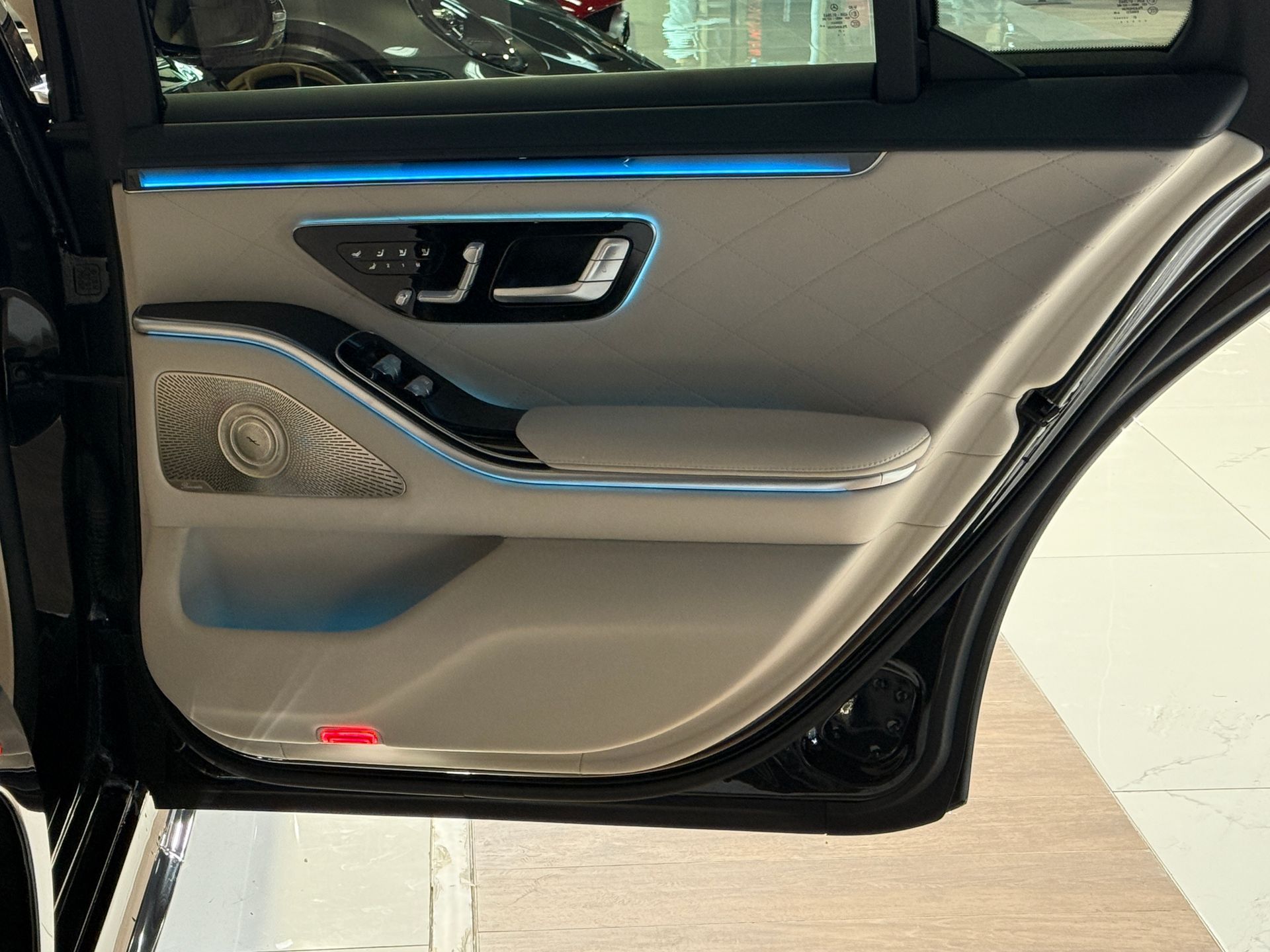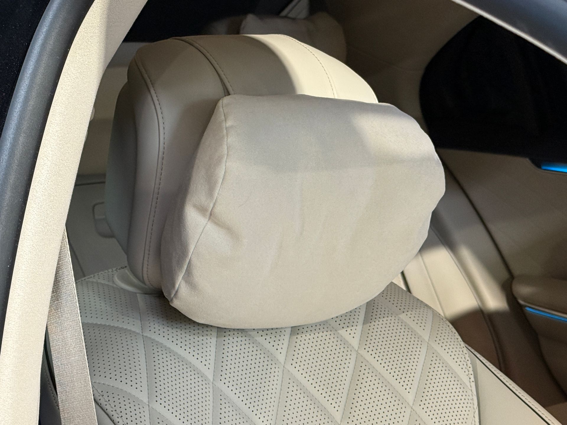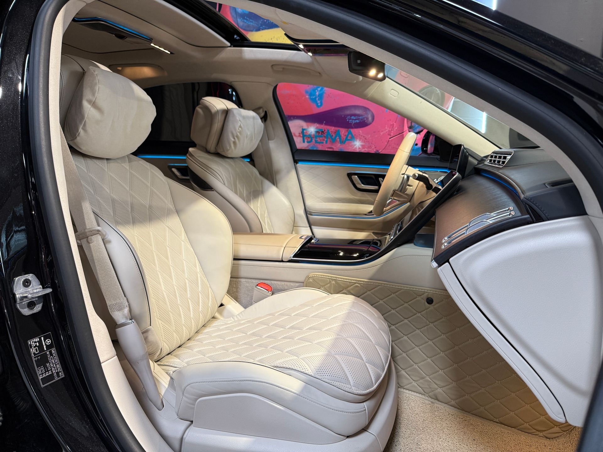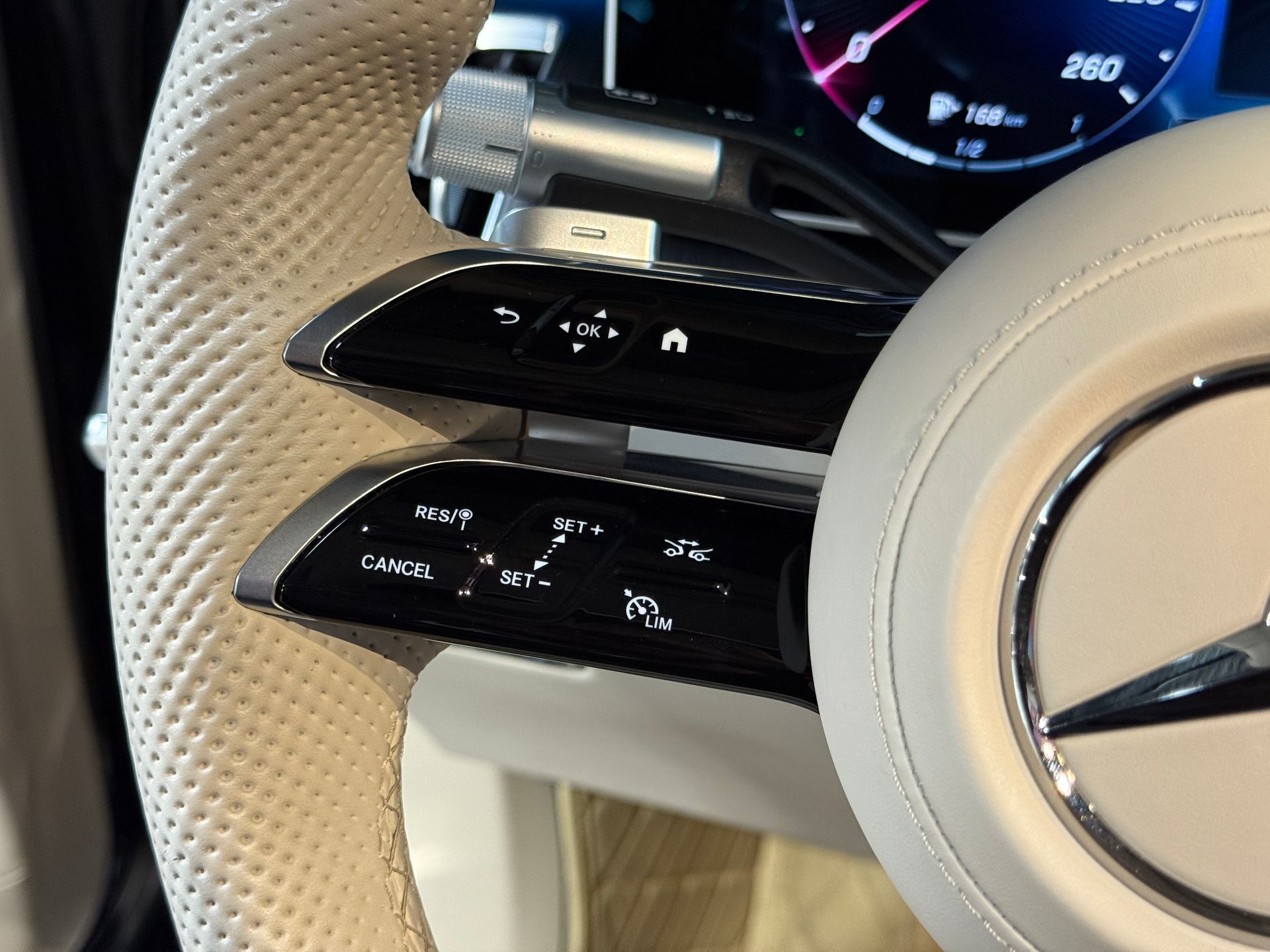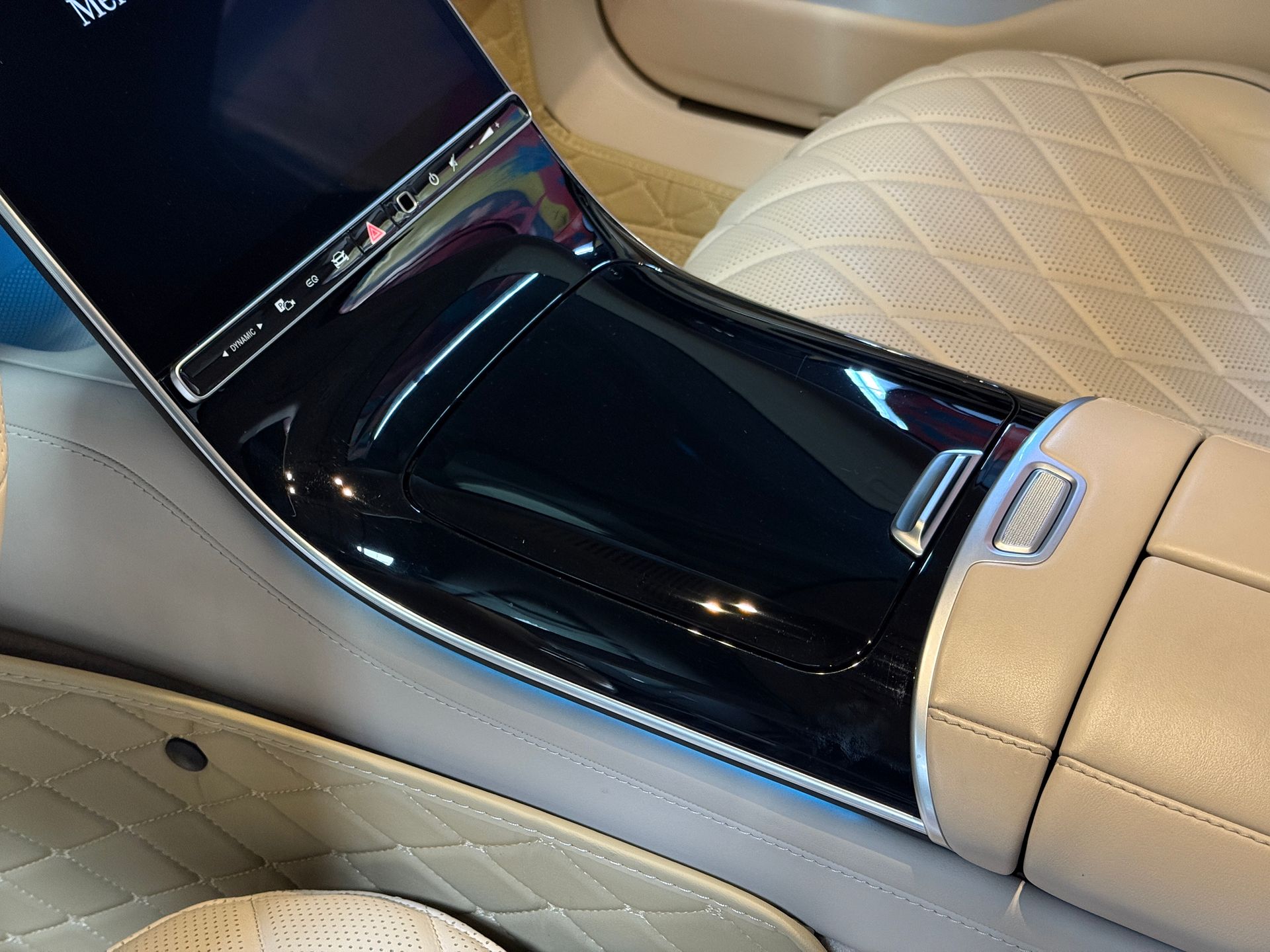 Notre exemplaire se distingue par une configuration exceptionnelle : Pack Chauffeur, sièges massants arrière, cuir Exclusive beige, système audio Burmester 3D, Affichage tête haute, et Pack AMG Line extérieur.