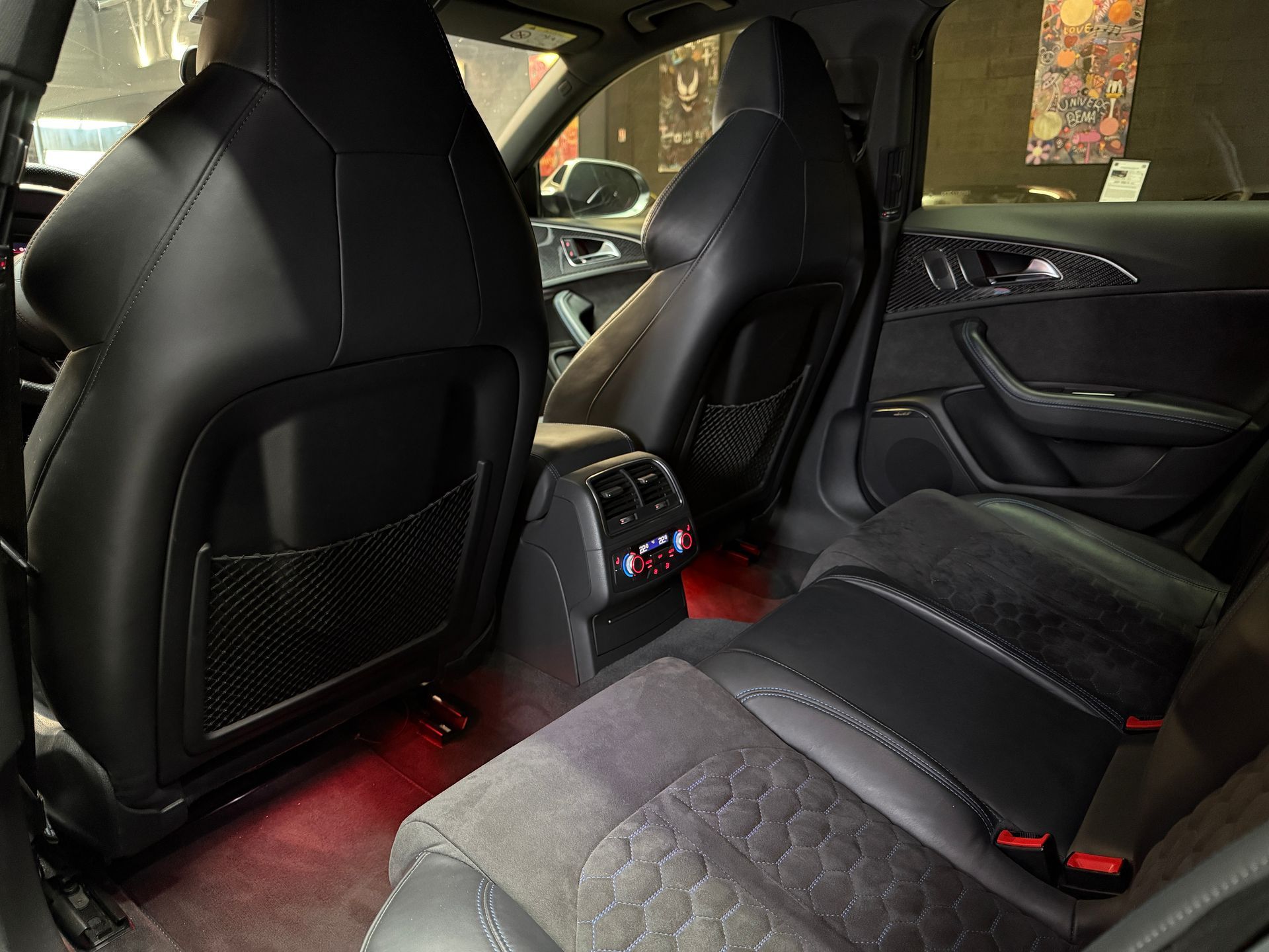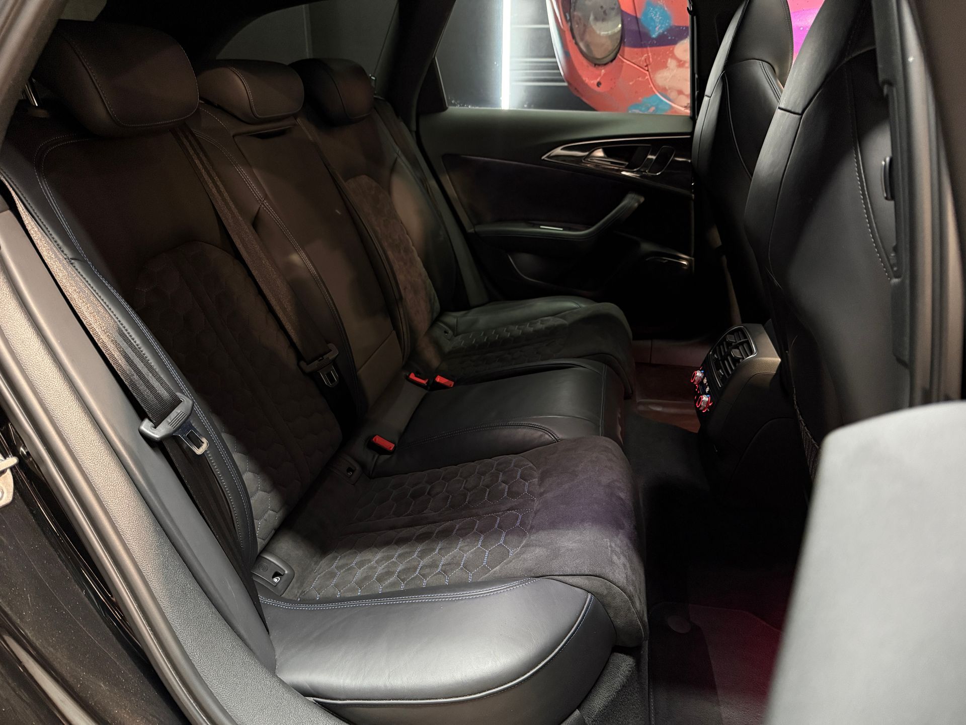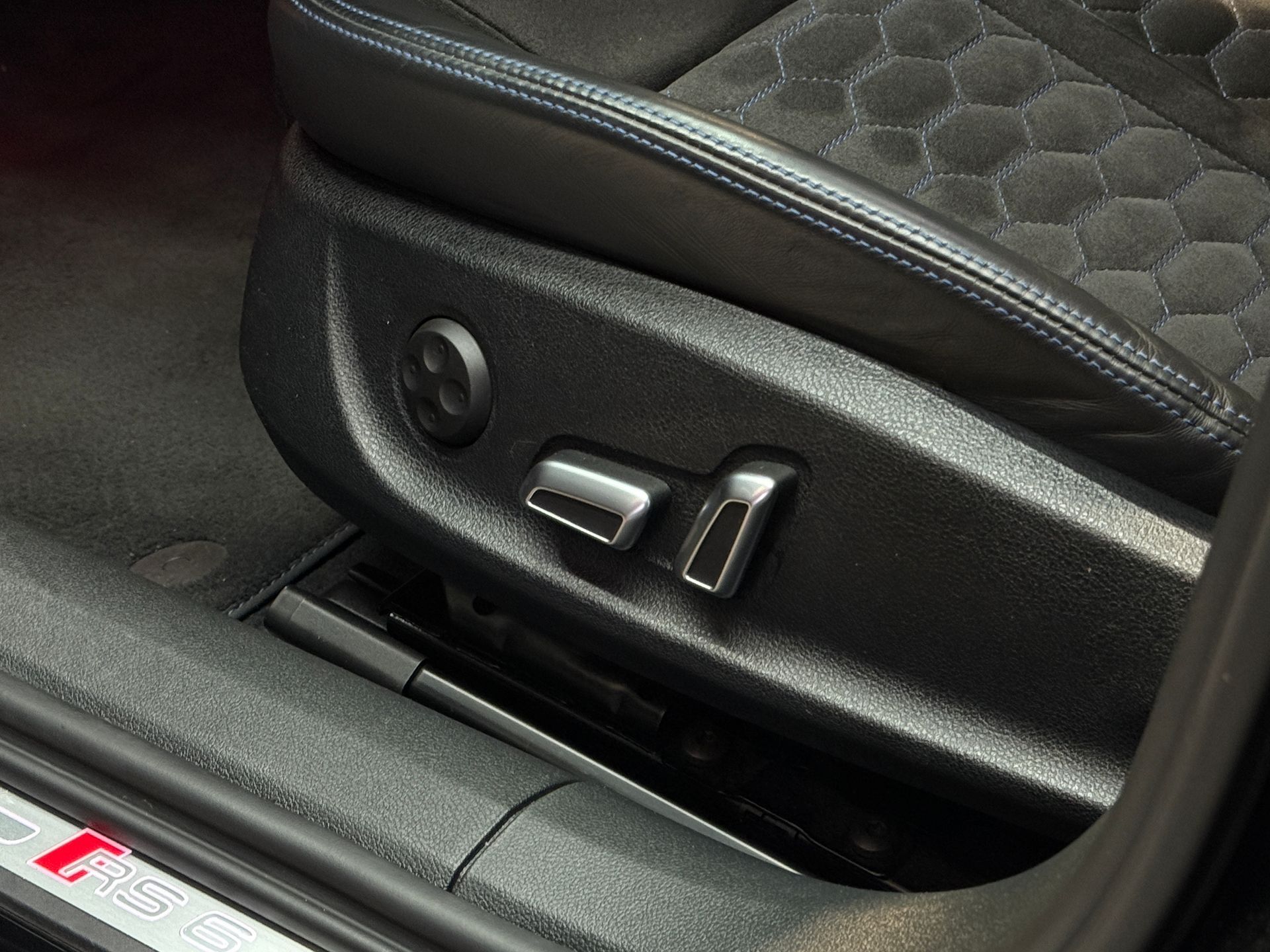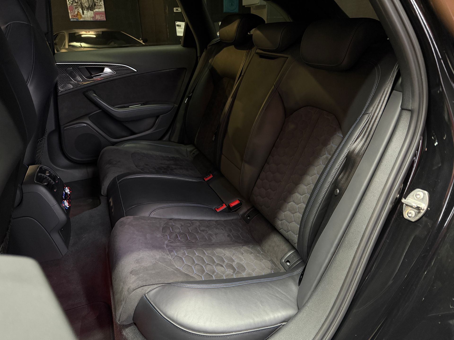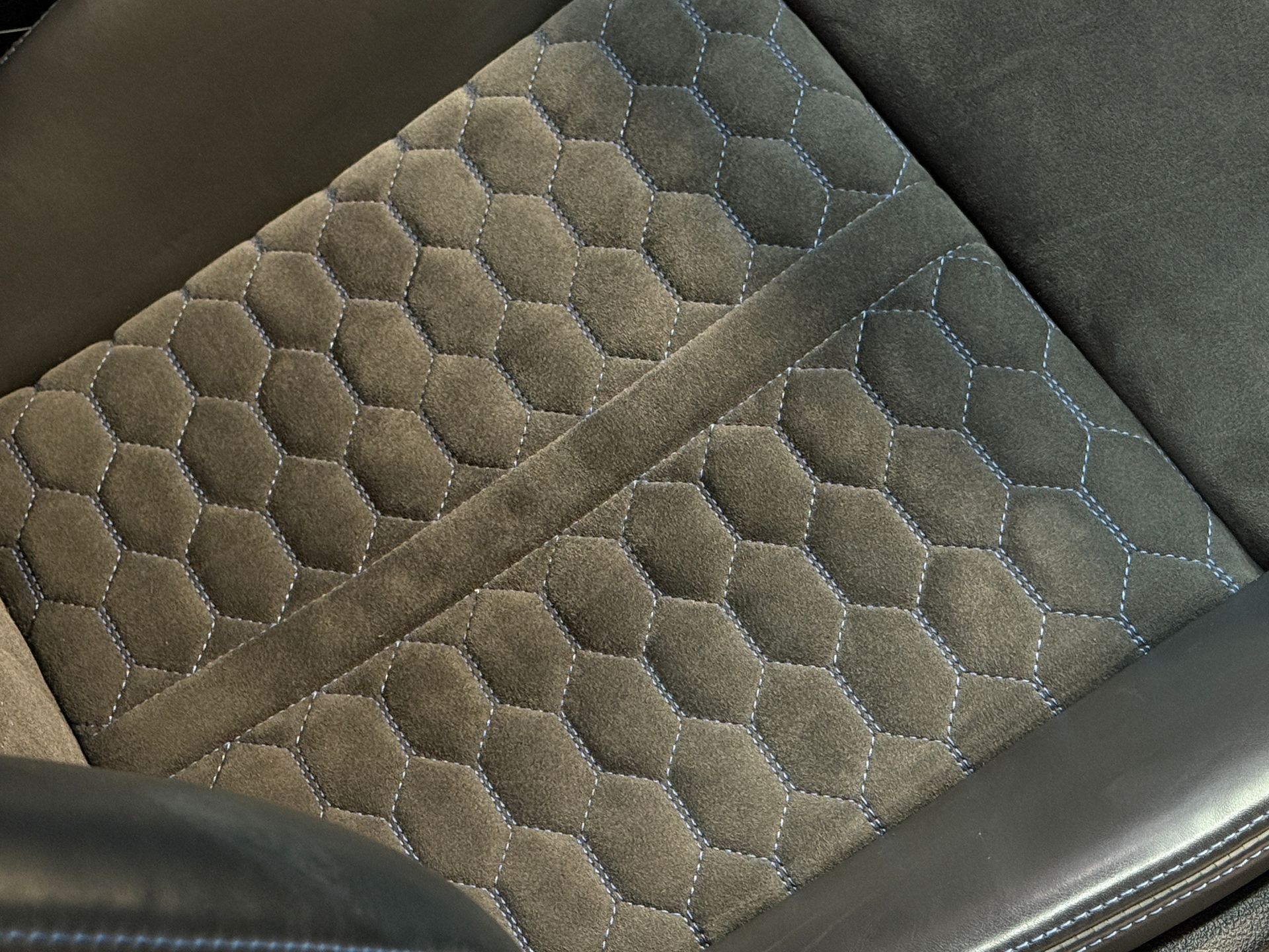 - Sellerie cuir / alcantara avec surpiqures bleues