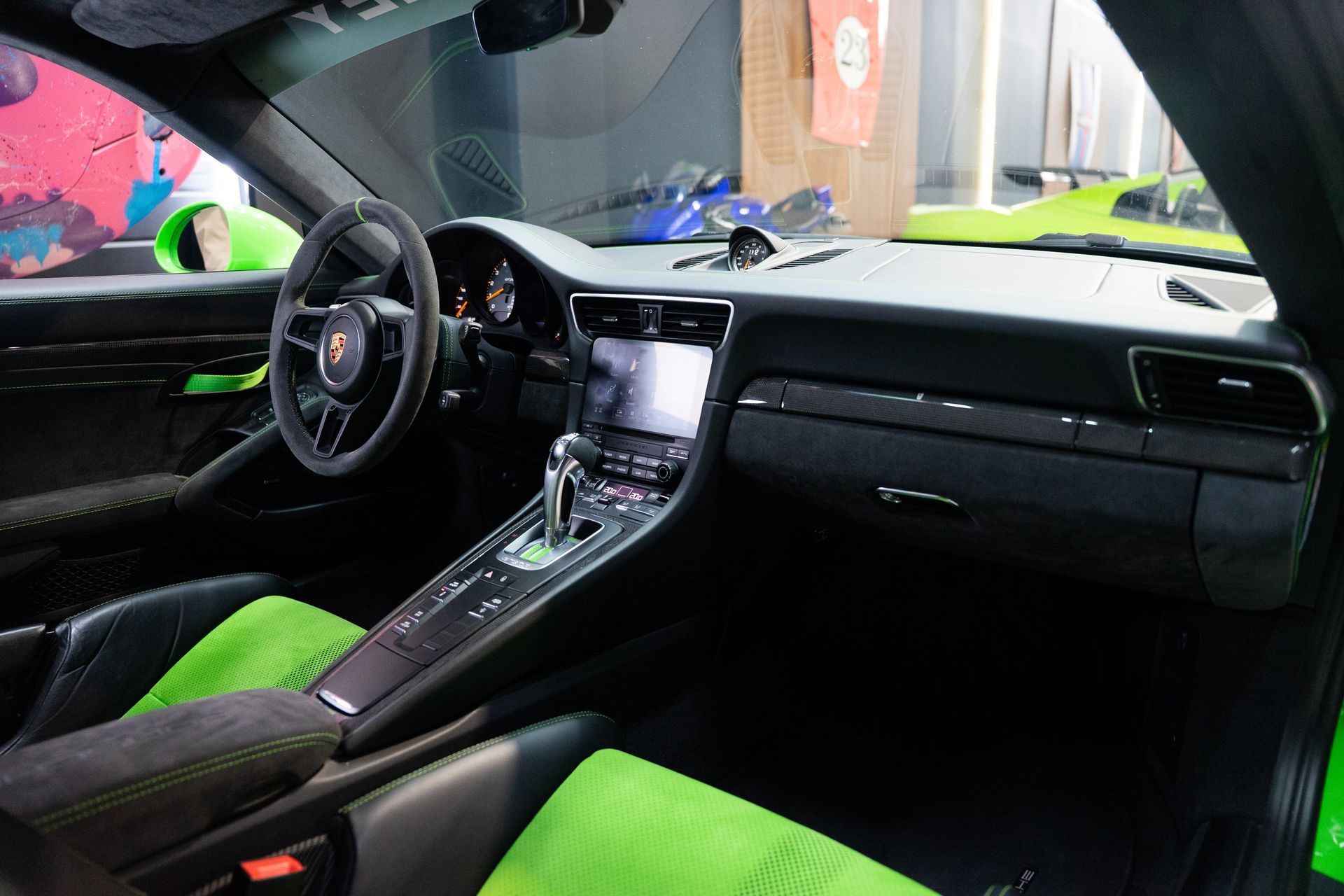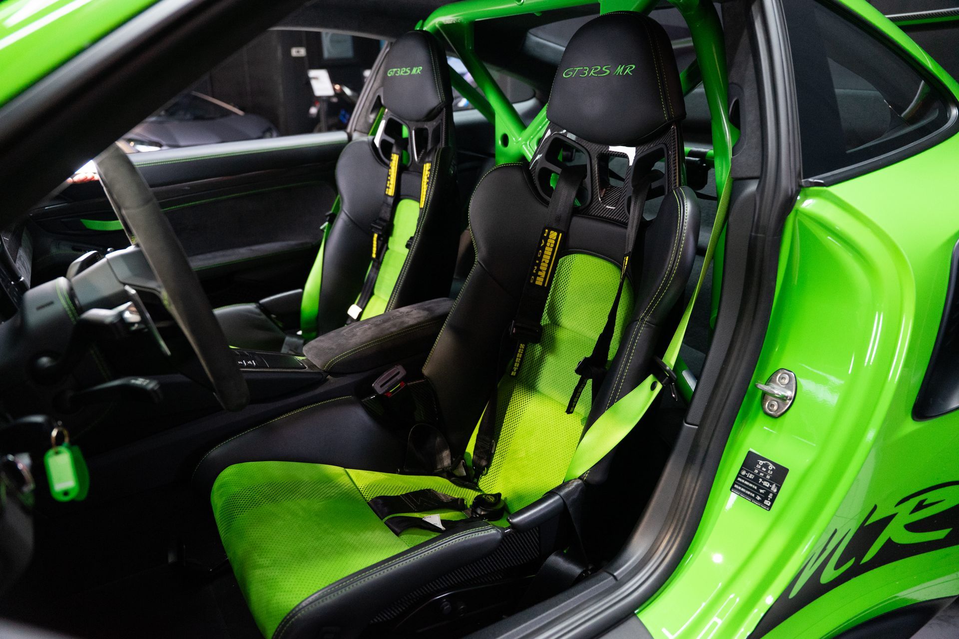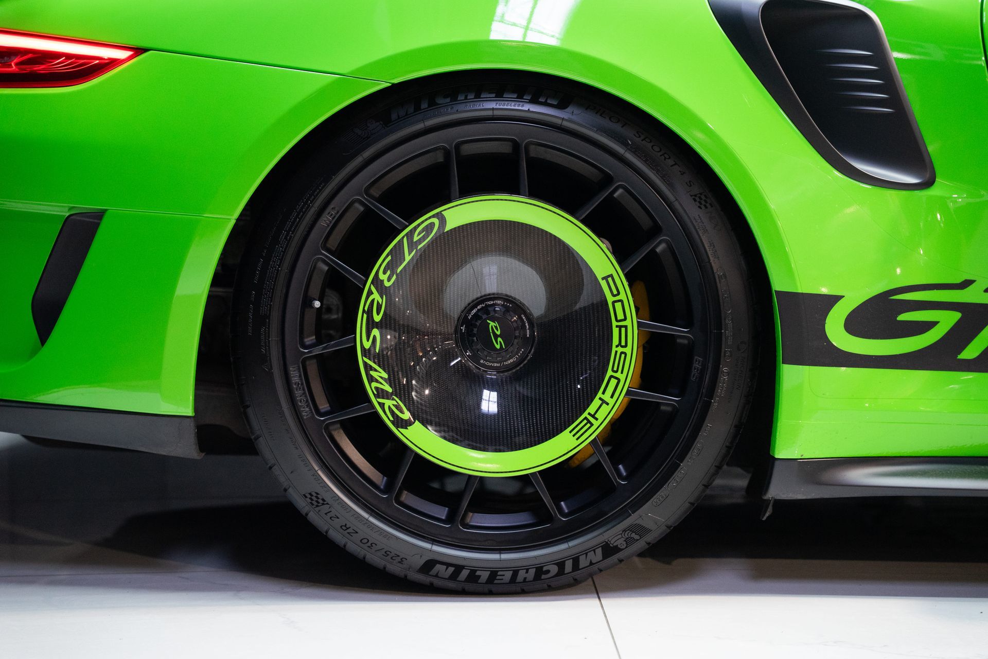 BEMA VITESSE vous propose aujourd’hui cette Porsche 991.2 GT3 RS, présentée dans l’iconique teinte Vert Lézard, associée à un intérieur tout cuir noir avec surpiqûres Vert Lézard.