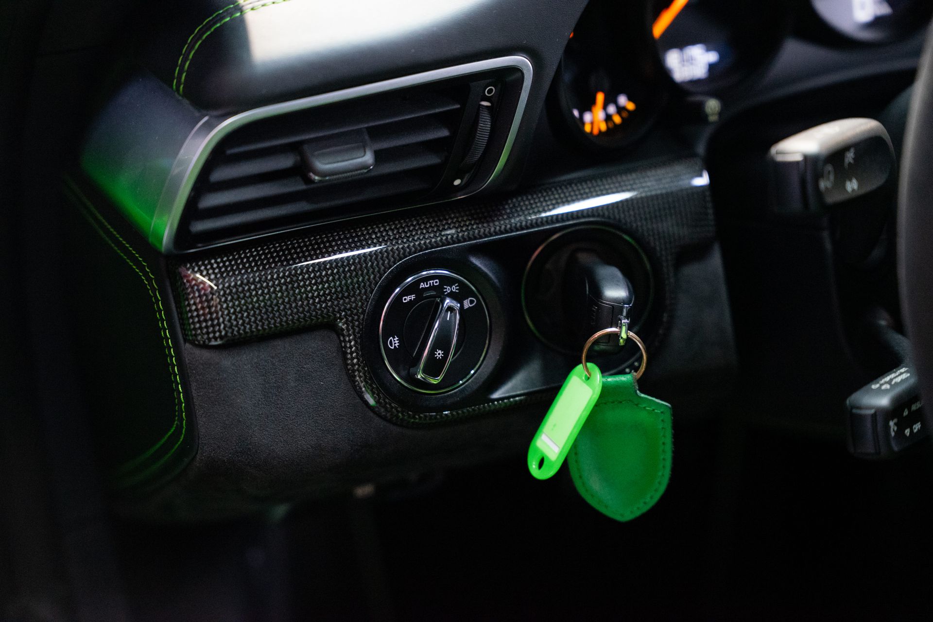 Intérieur : Cuir noir avec surpiqûres Vert Lézard (77)