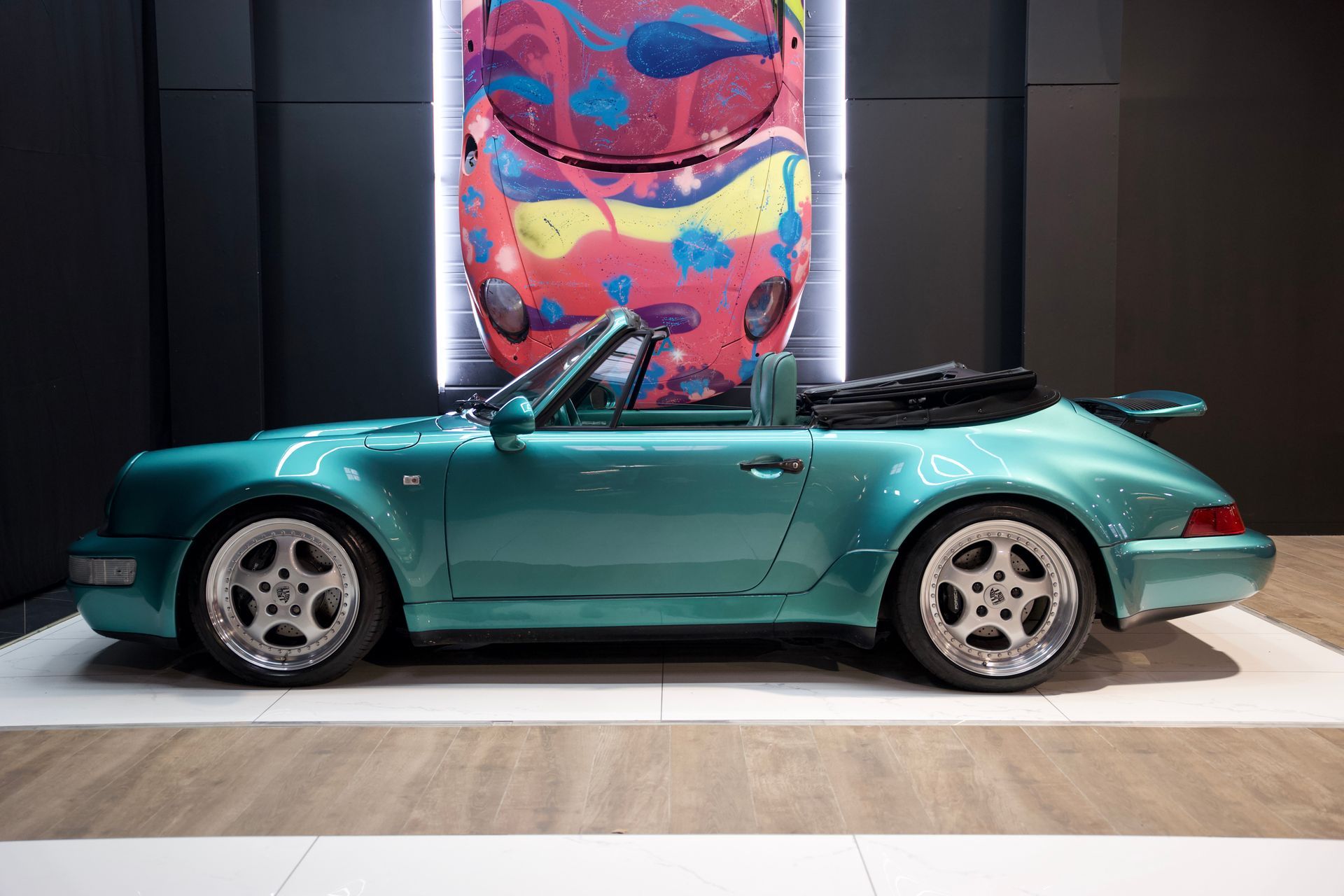 BEMA VITESSE vous propose aujourd’hui cette rare Porsche 911 Type 964 Carrera 2 Cabriolet Turbo Look Usine (TLU) ou WTL (Code 650). Parmi les 1 171 exemplaires produits au total, seulement 599 ont été produits en boîte manuelle pour l’Europe, et notre modèle en fait donc partie.