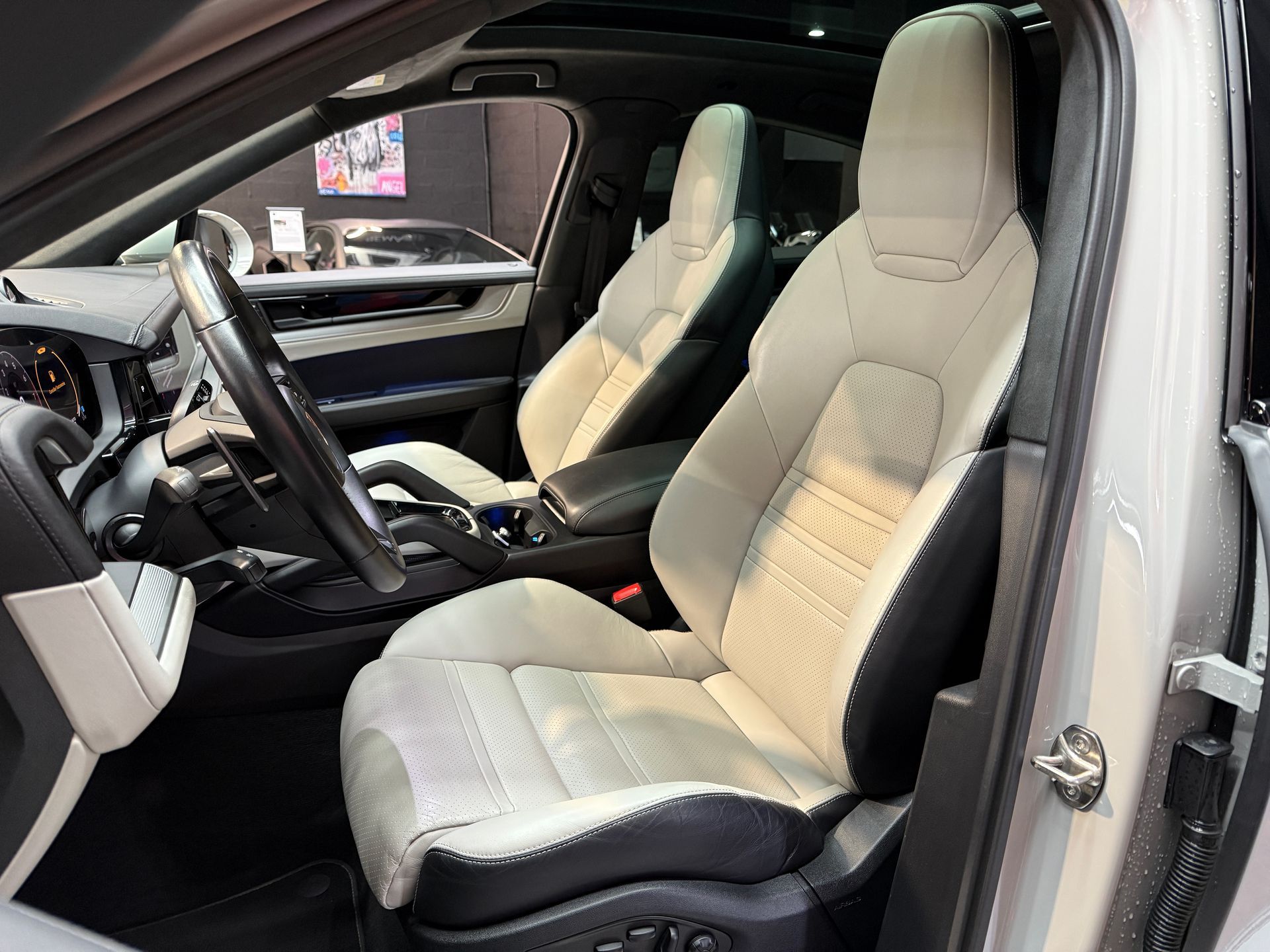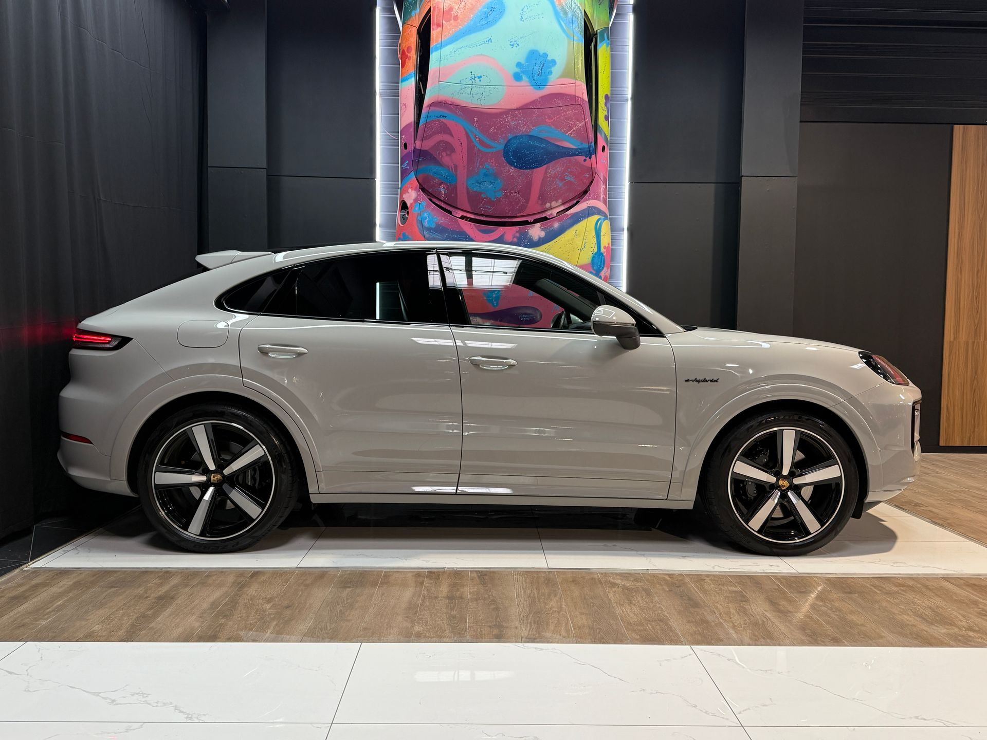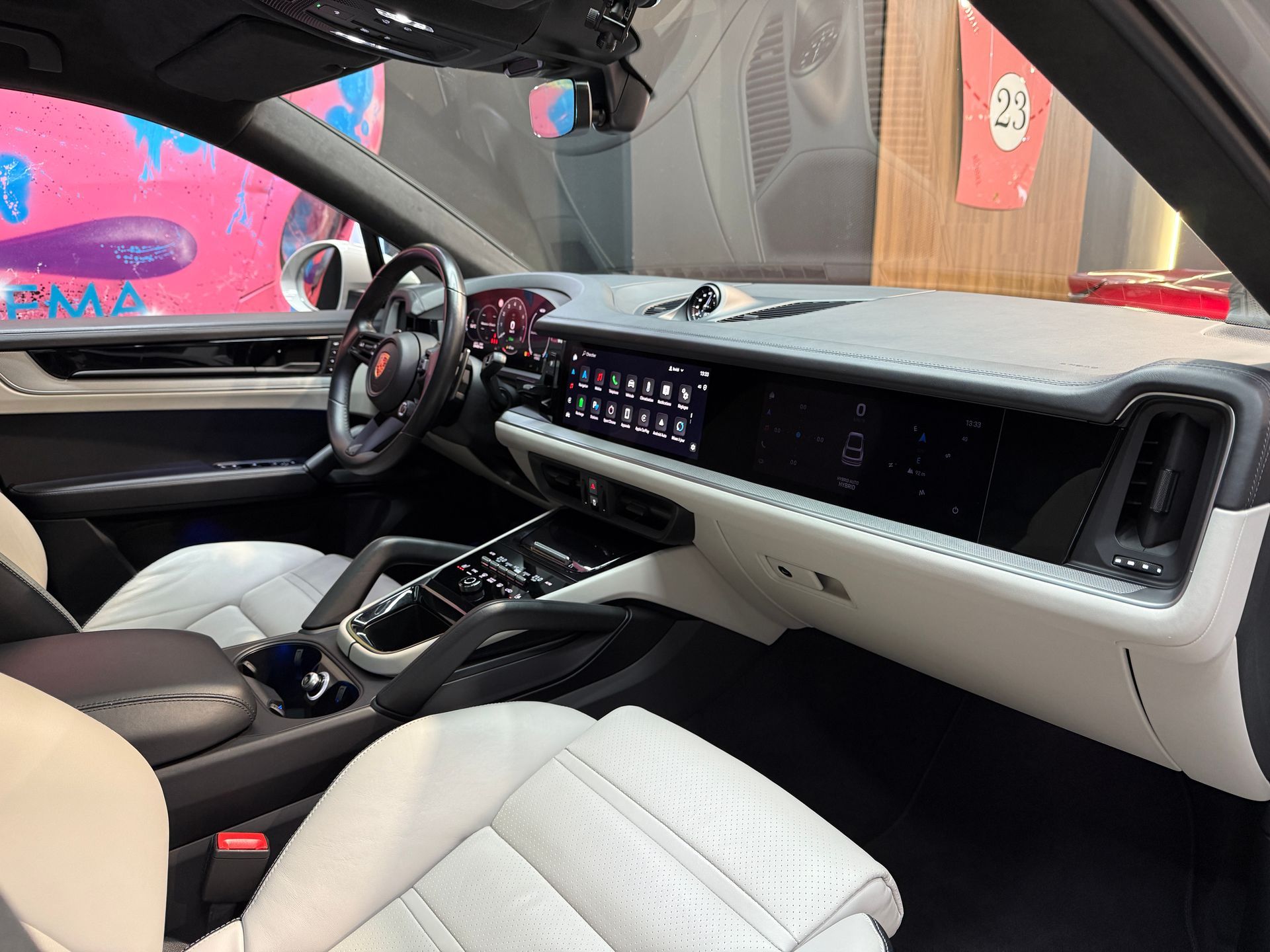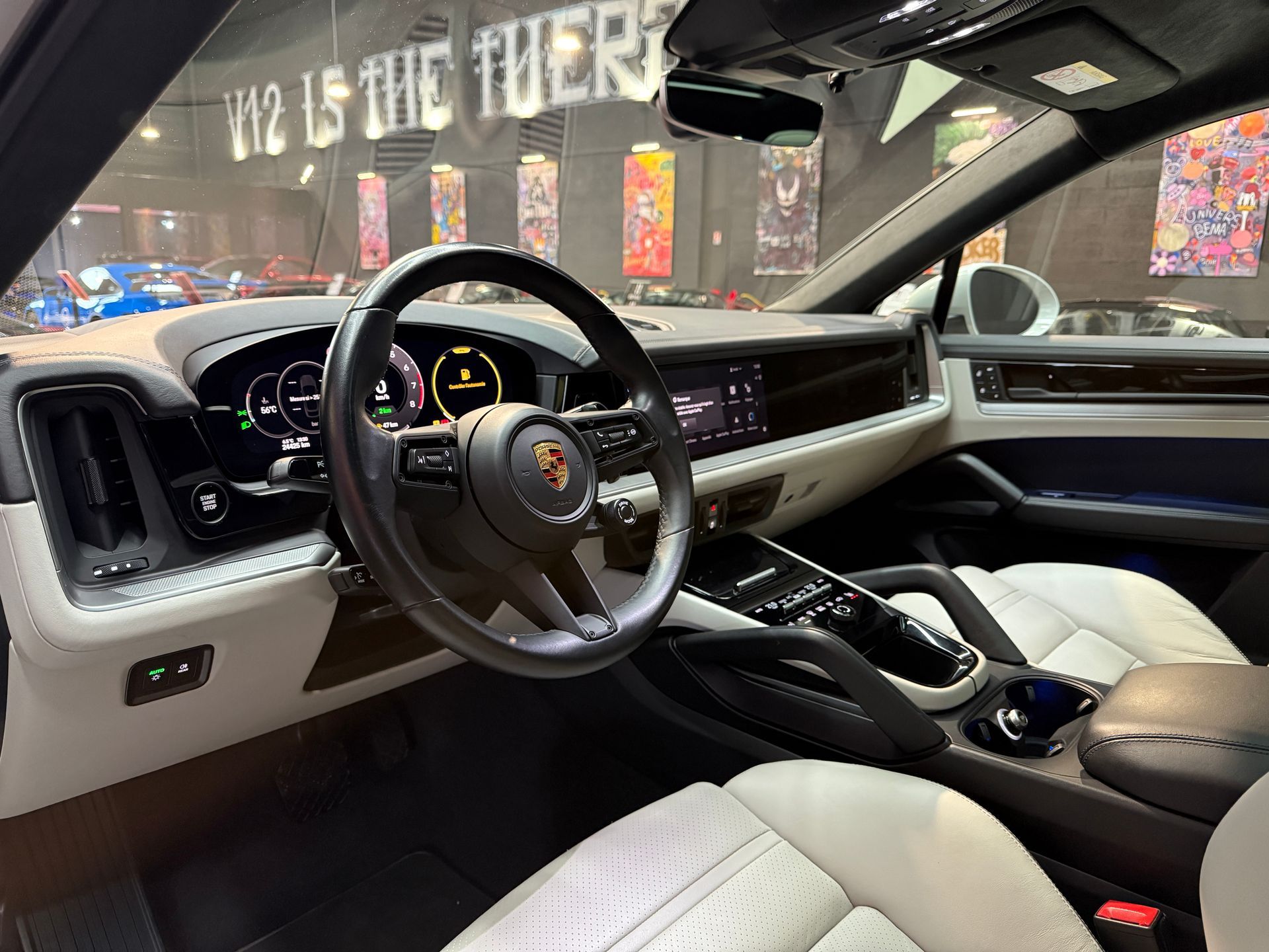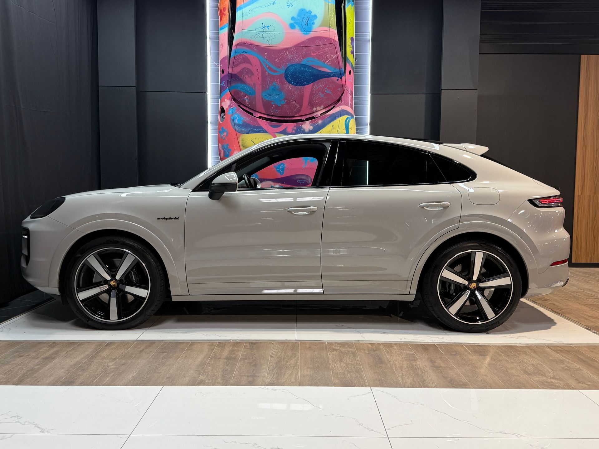 BEMA VITESSE vous propose aujourd’hui ce Porsche Cayenne Coupé E-Hybrid 2024, présenté dans la très convoitée teinte Gris Craie, associée à un intérieur cuir lisse bicolore Noir / Craie.