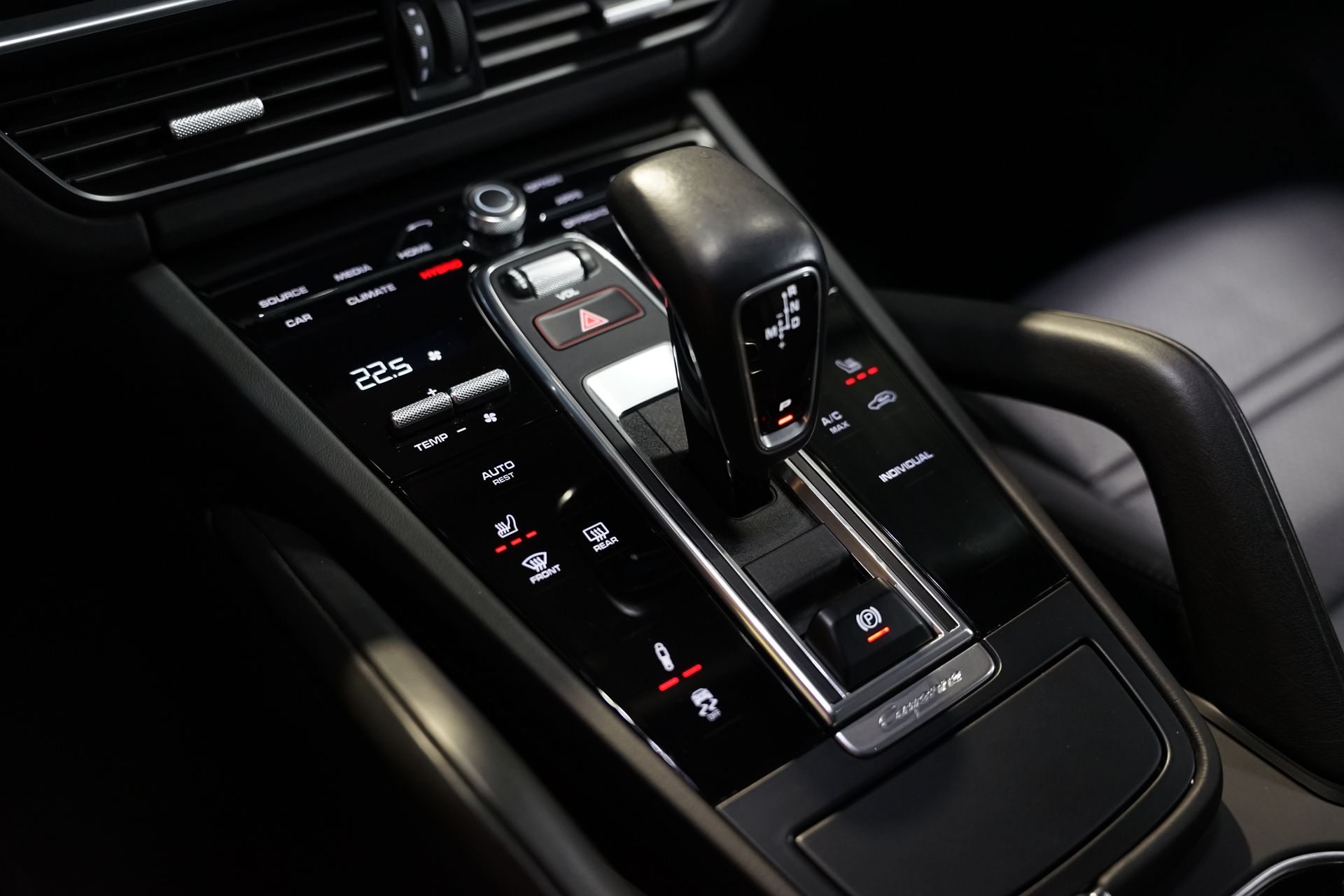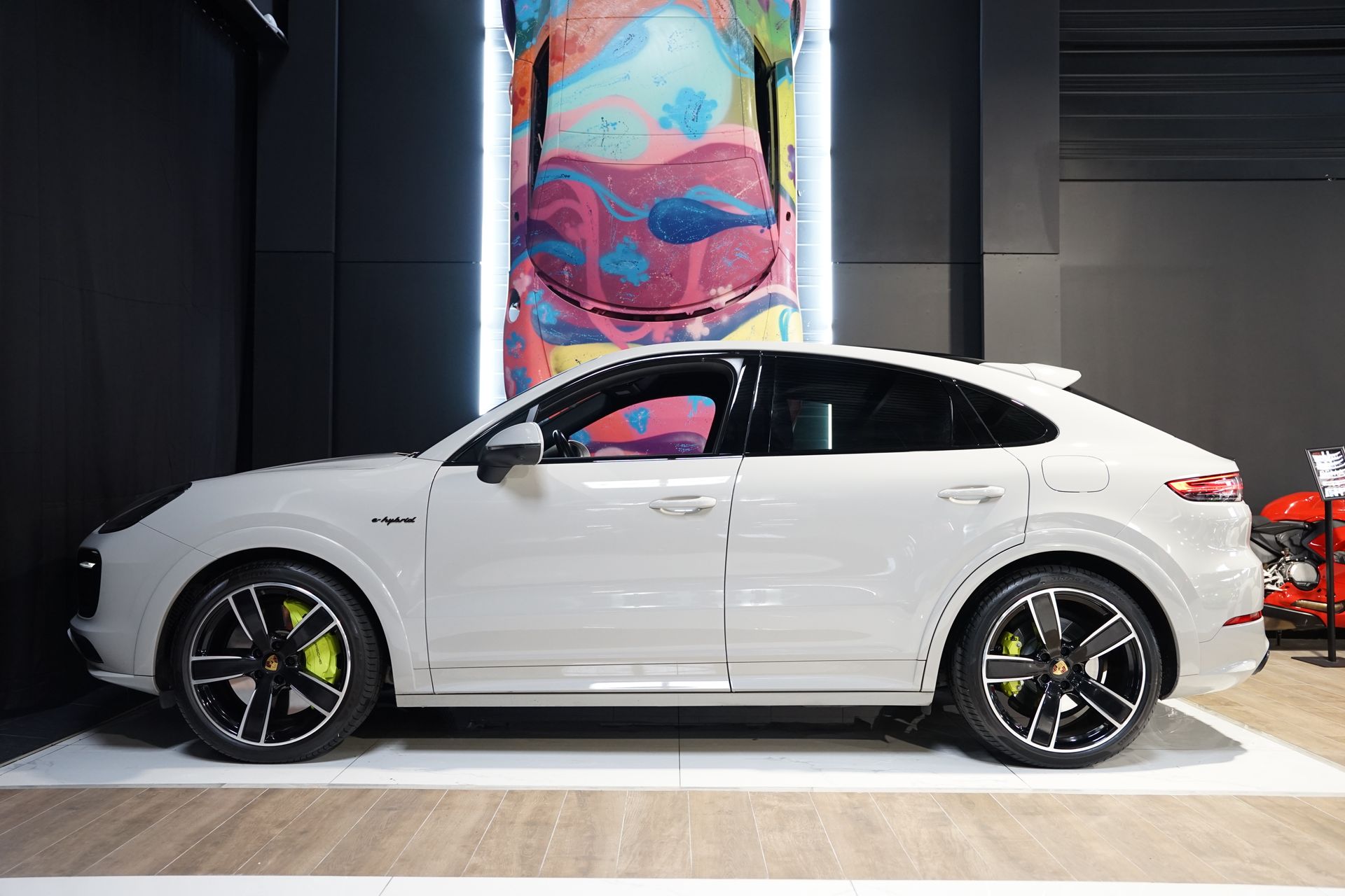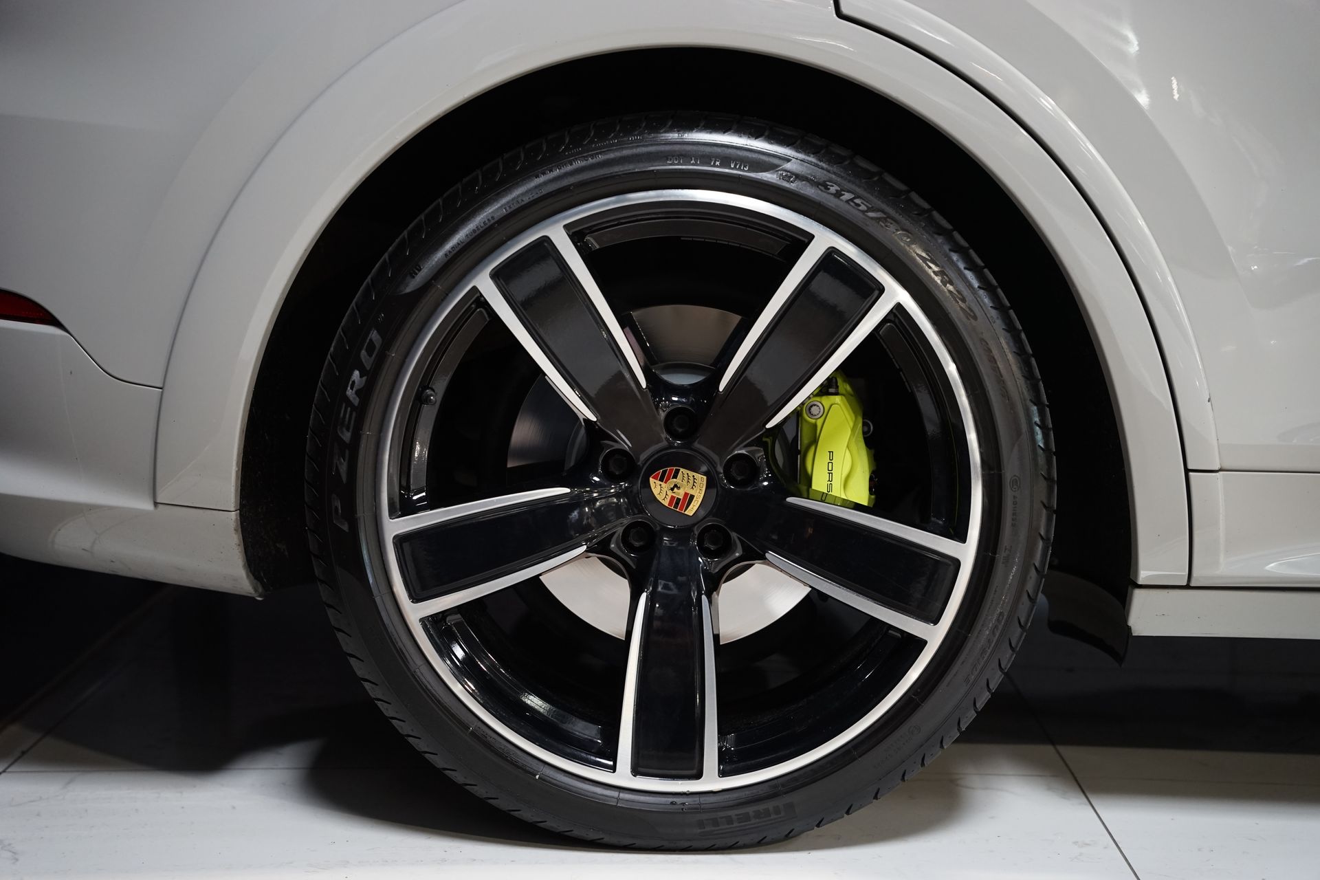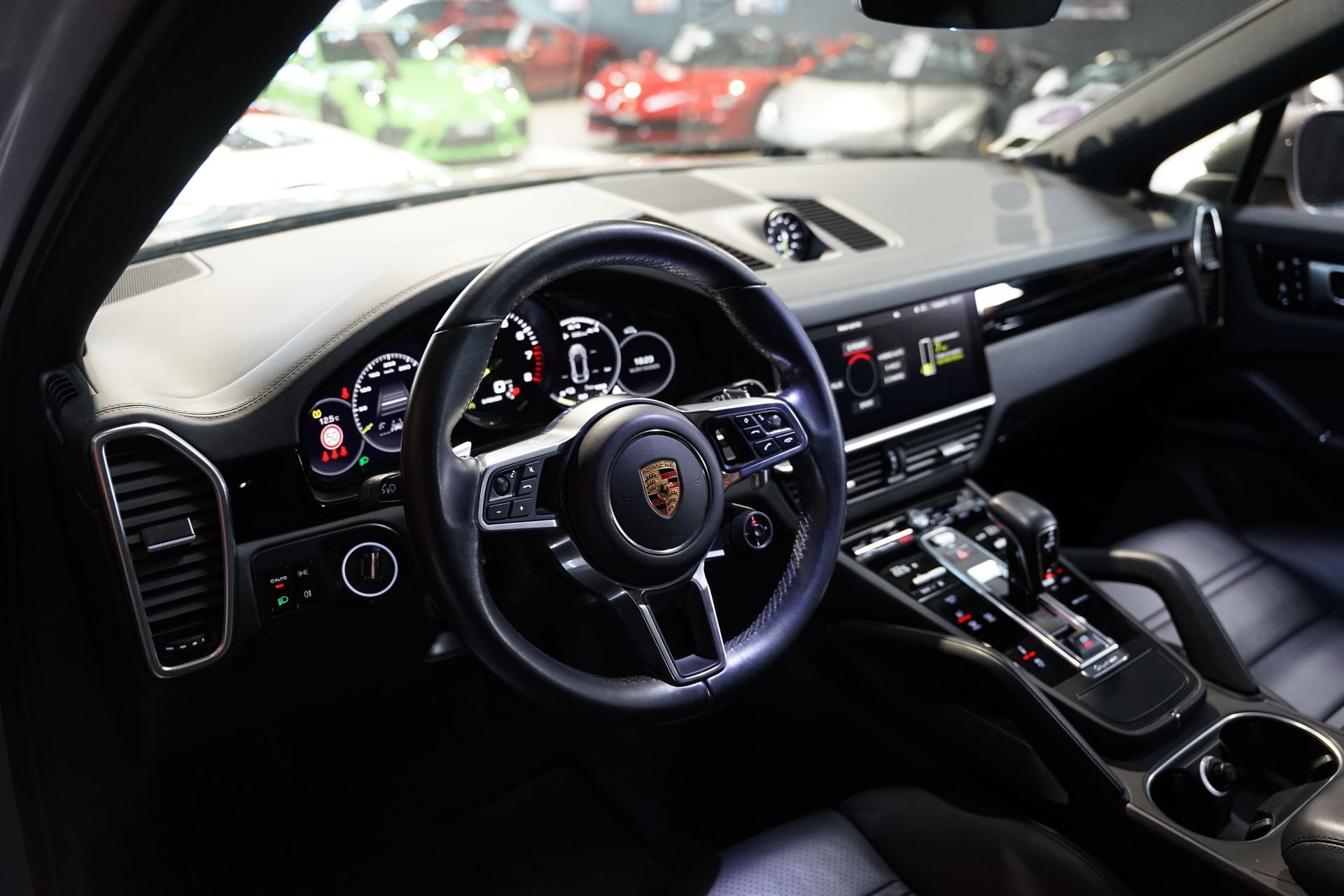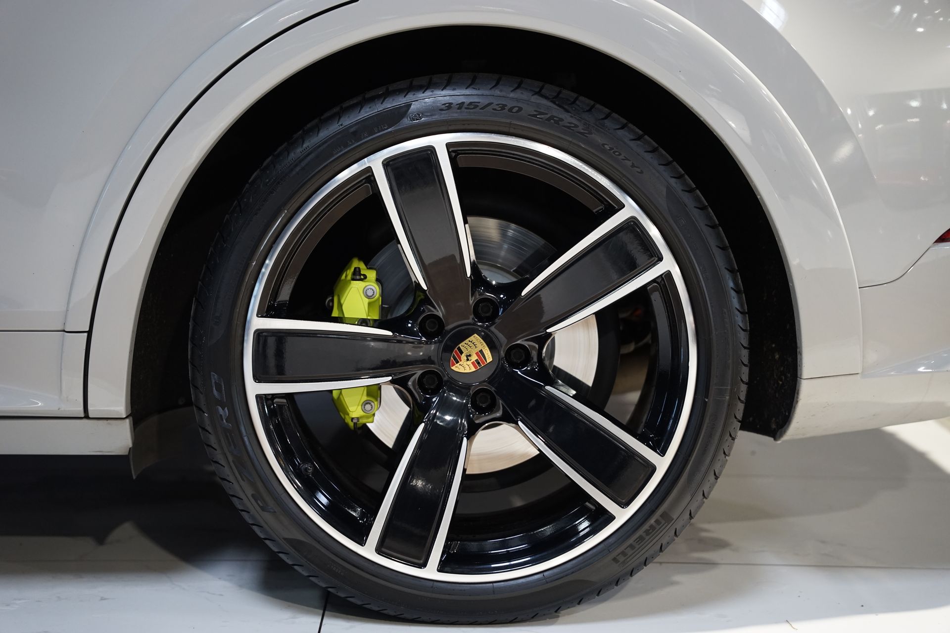 Cette configuration rare allie élégance, performance et sportivité à travers des équipements haut de gamme, dont le Pack SportDesign Noir Brillant, les freins Porsche PSCB à étriers Vert Acide, et les jantes 22’’ Sport Classic.